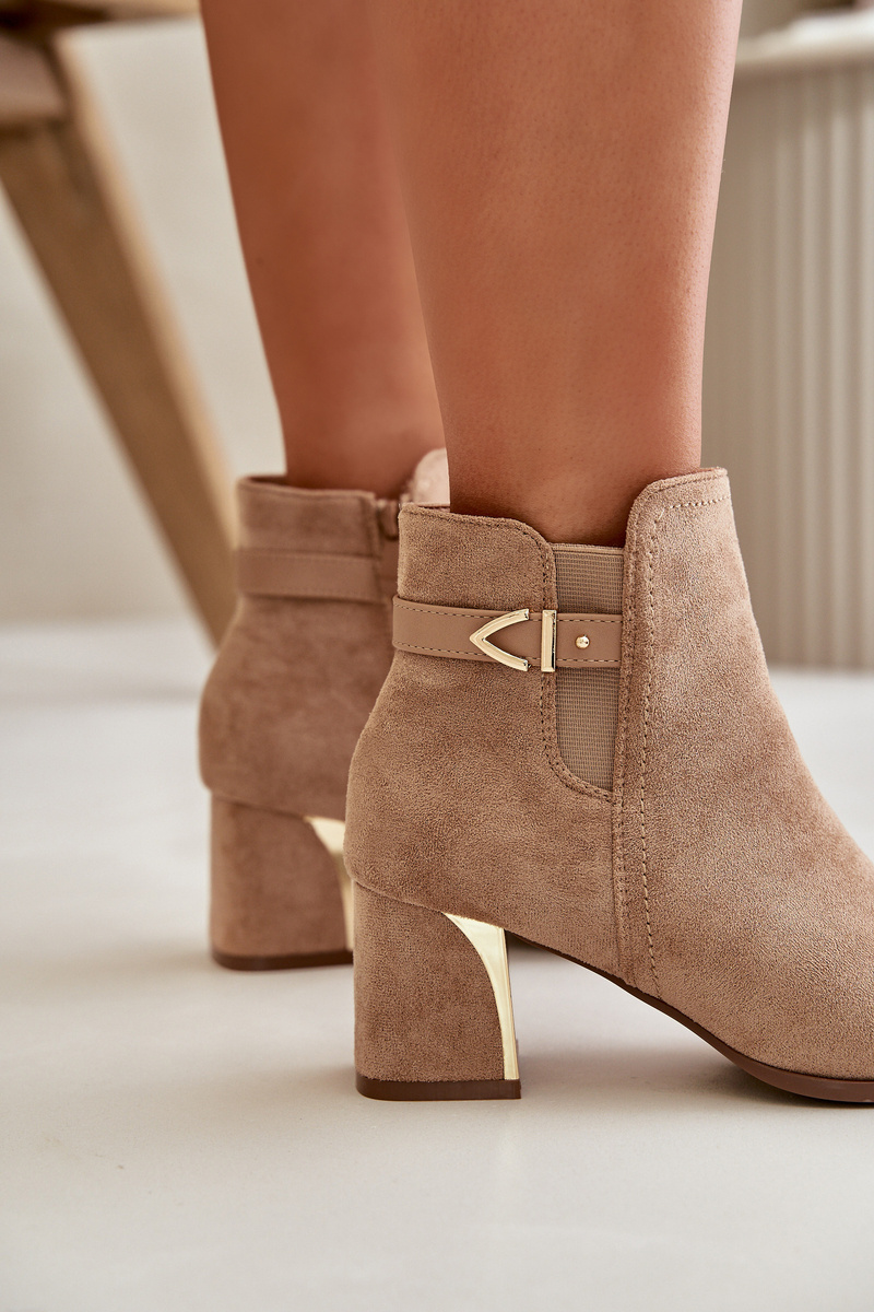 Dámske členkové topánky na opätku na zipsy eko semišové tmavobežové Bonucci