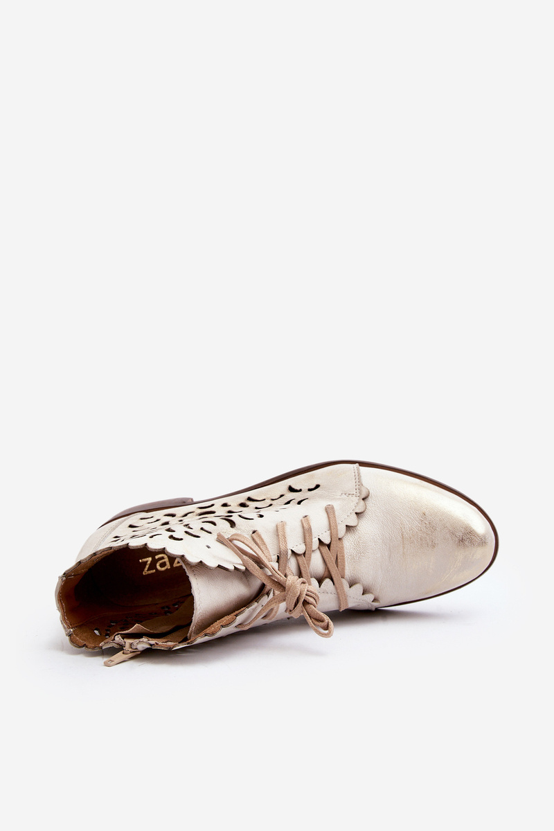 Dámske členkové topánky so šnurovaním Zazoo 2871 zlaté potreté