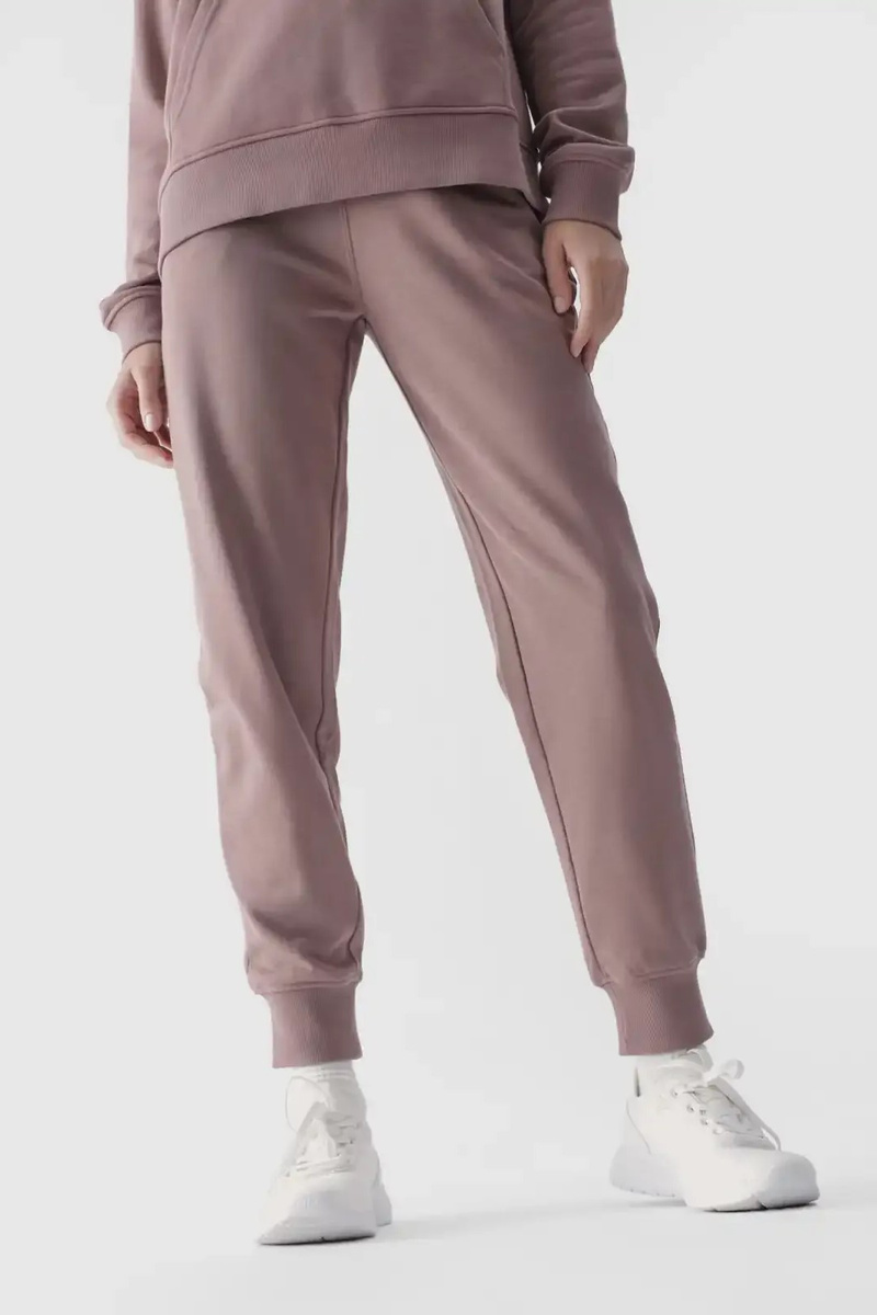 Dámske jogger nohavice sú ideálne ako prvok pre každodenné casual aj športové štýly. Majú pravidelný strih, ktorý sa pohodlne prispôsobí siluete a zúžené nohavice zakončené elastickým sťahovaním. French terry tkanina je z jednej strany hladká, zatiaľ čo z druhej strany má viditeľnú štruktúru v podobe slučky. Tkanina v tejto väzbe je mäkká, viac splývavá a tenšia na dotyk. Nohavice nemajú podšívku, vďaka čomu sú ľahšie a vhodné na teplejšie dni. Po stranách sa nachádzajú 2 otvorené vrecká. Elastický pás s vnútorným nastavením na šnúrky. Dresy 4F pre ženy sú vyrobené z 79% bavlny, čo znamená, že sú mäkké, odolné a príjemné na dotyk. Prídavok polyesteru (21%) zaisťuje, že materiál si udržuje tvar a je odolný voči opotrebovaniu aj po mnoho sezón.