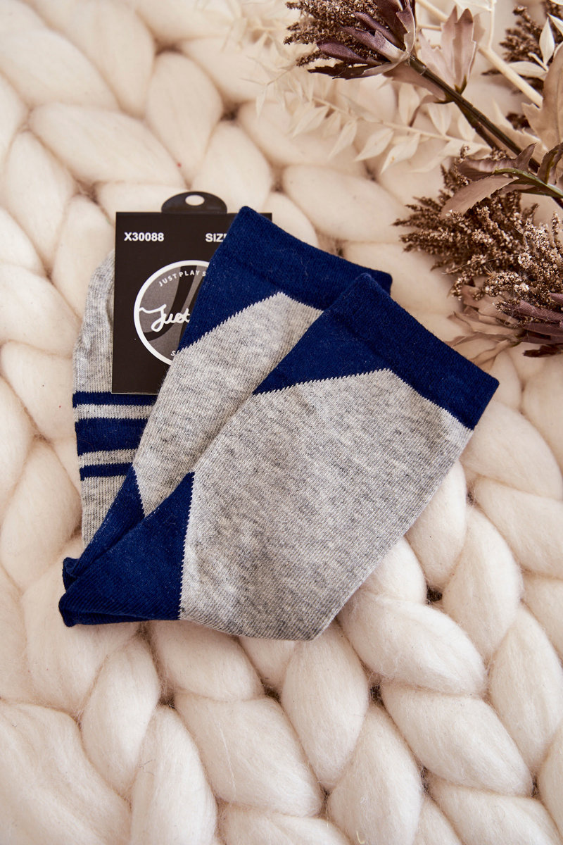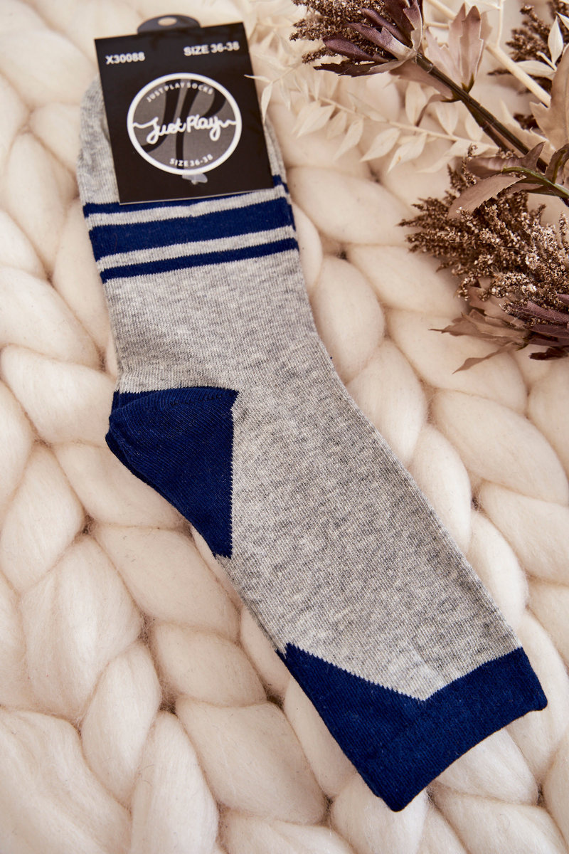 Dámske dvojfarebné ponožky so šedými modrými pruhmi