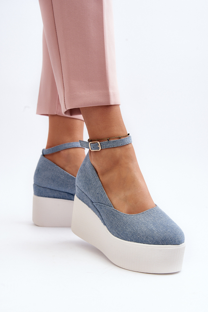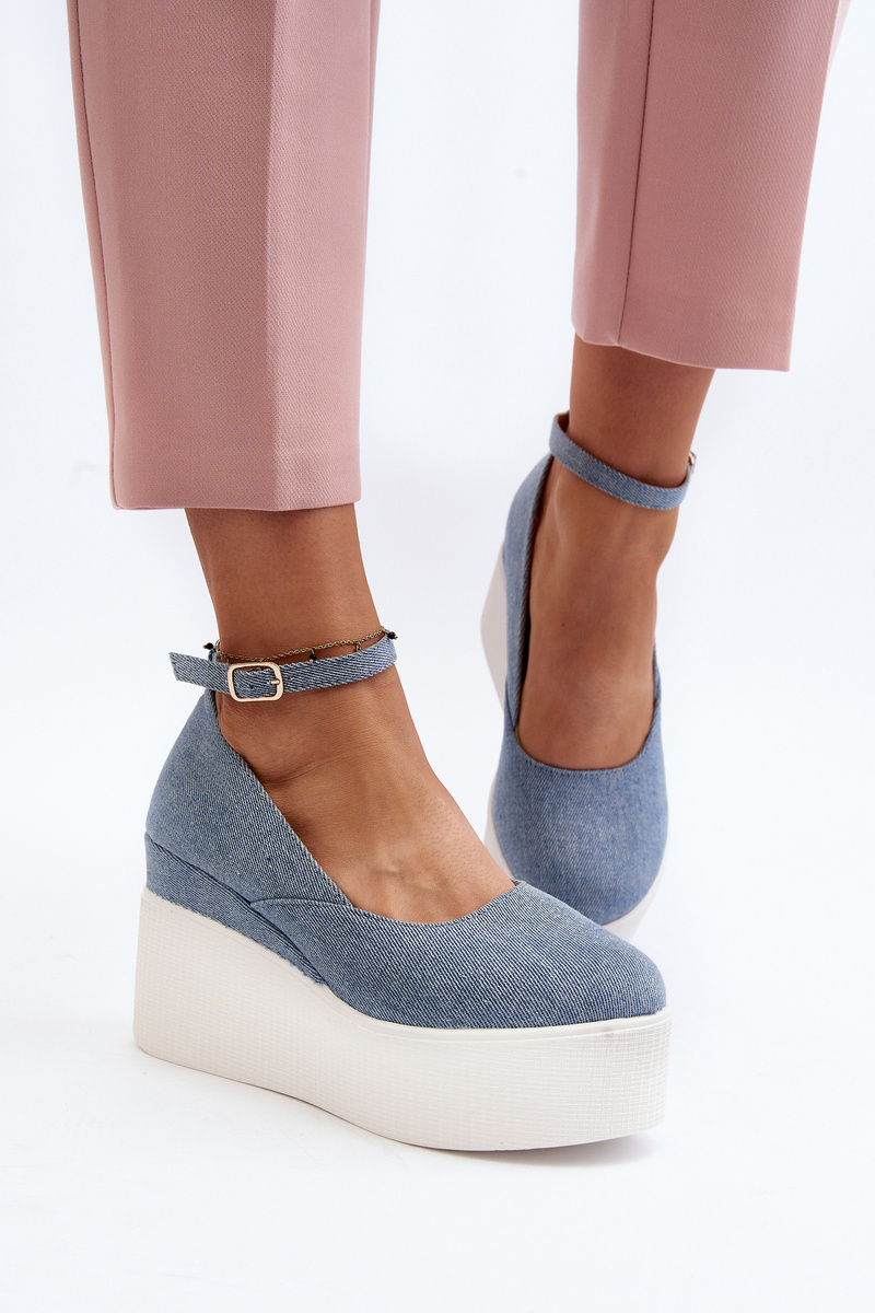 Dámske džínové espadrily na platforme modré Malla