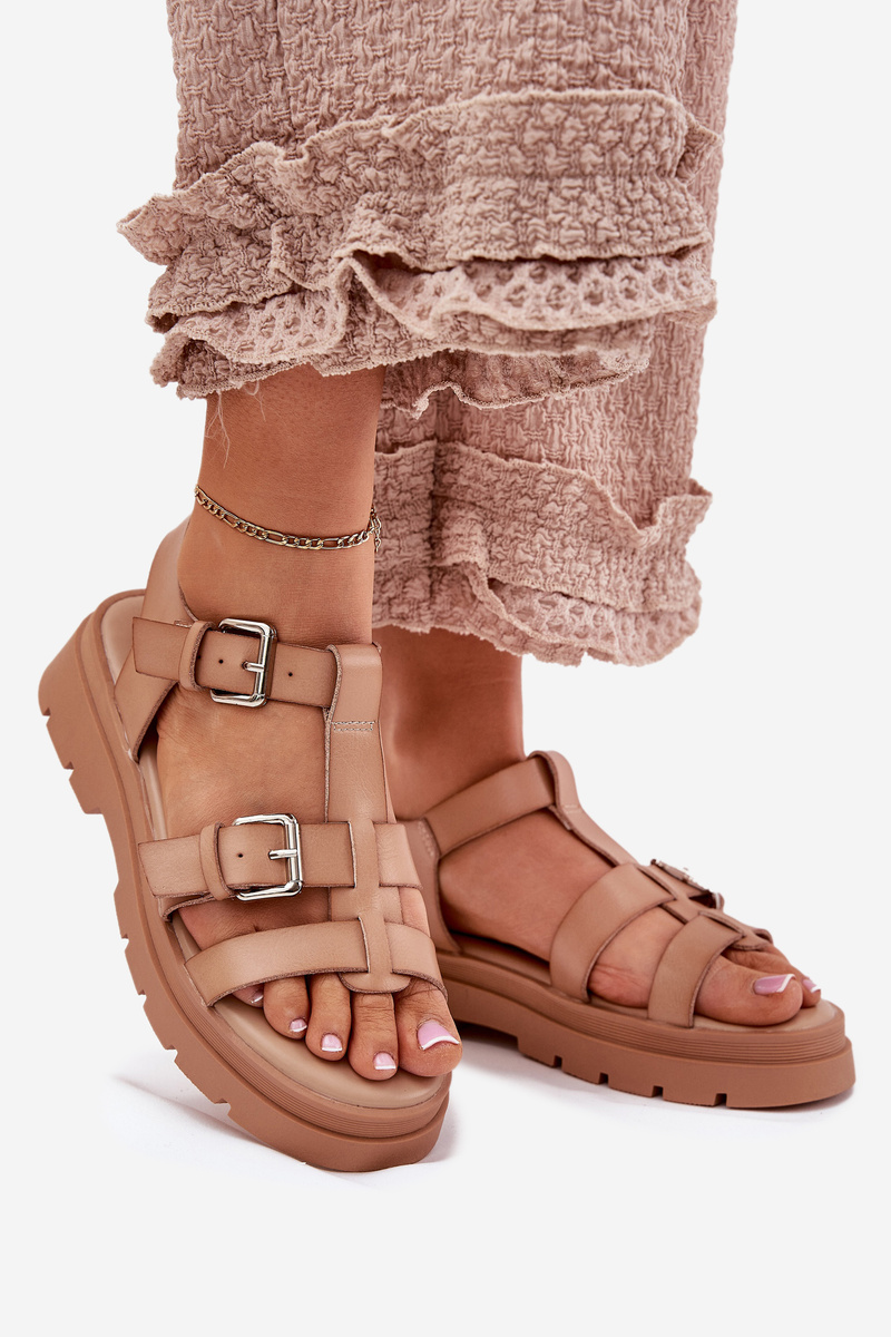Dámske Eko Kožené Sandále S Sponami Khaki Jeneliena