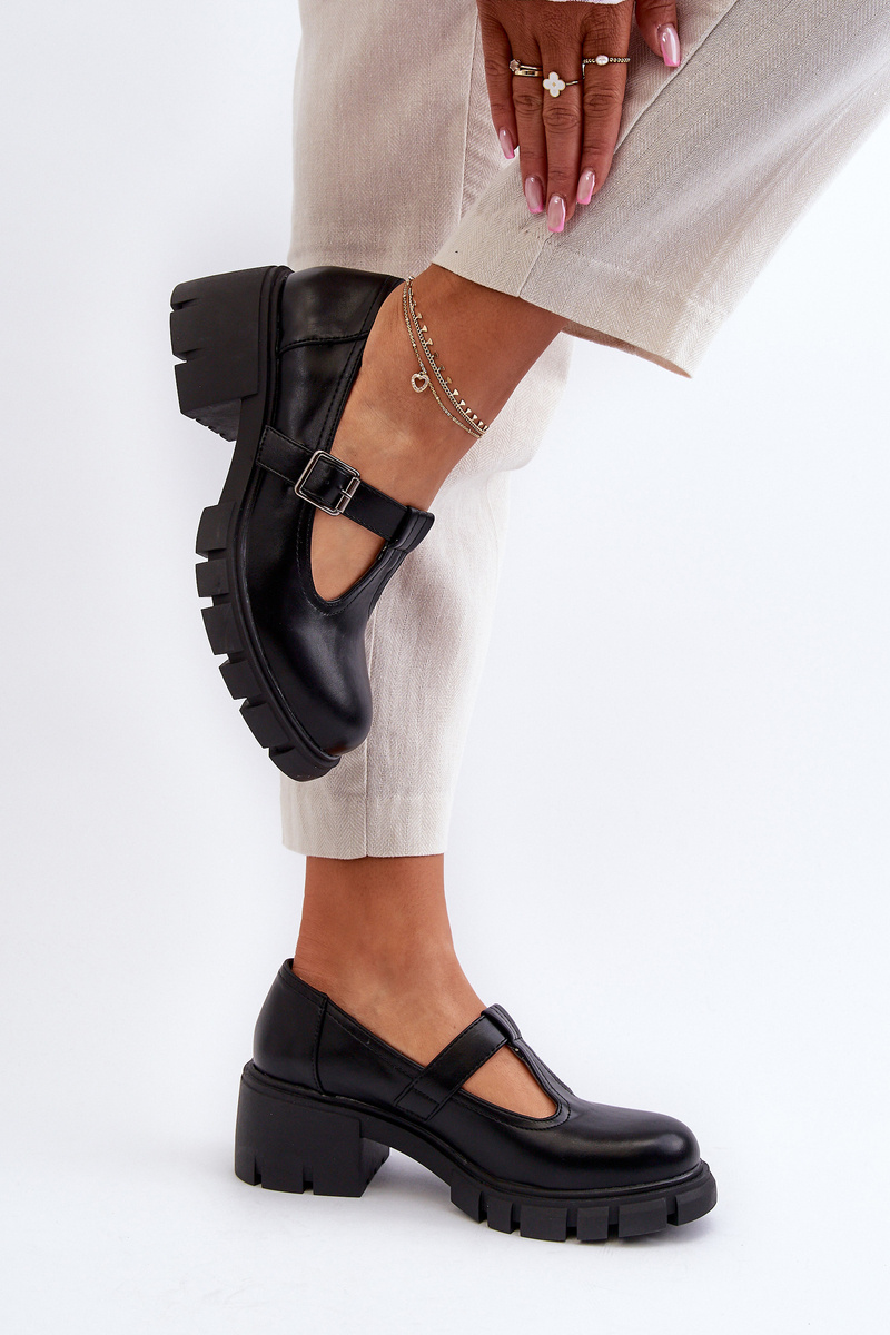 Dámske ekologické kožené poltopánky na platforme a podpätku čierne Emelna