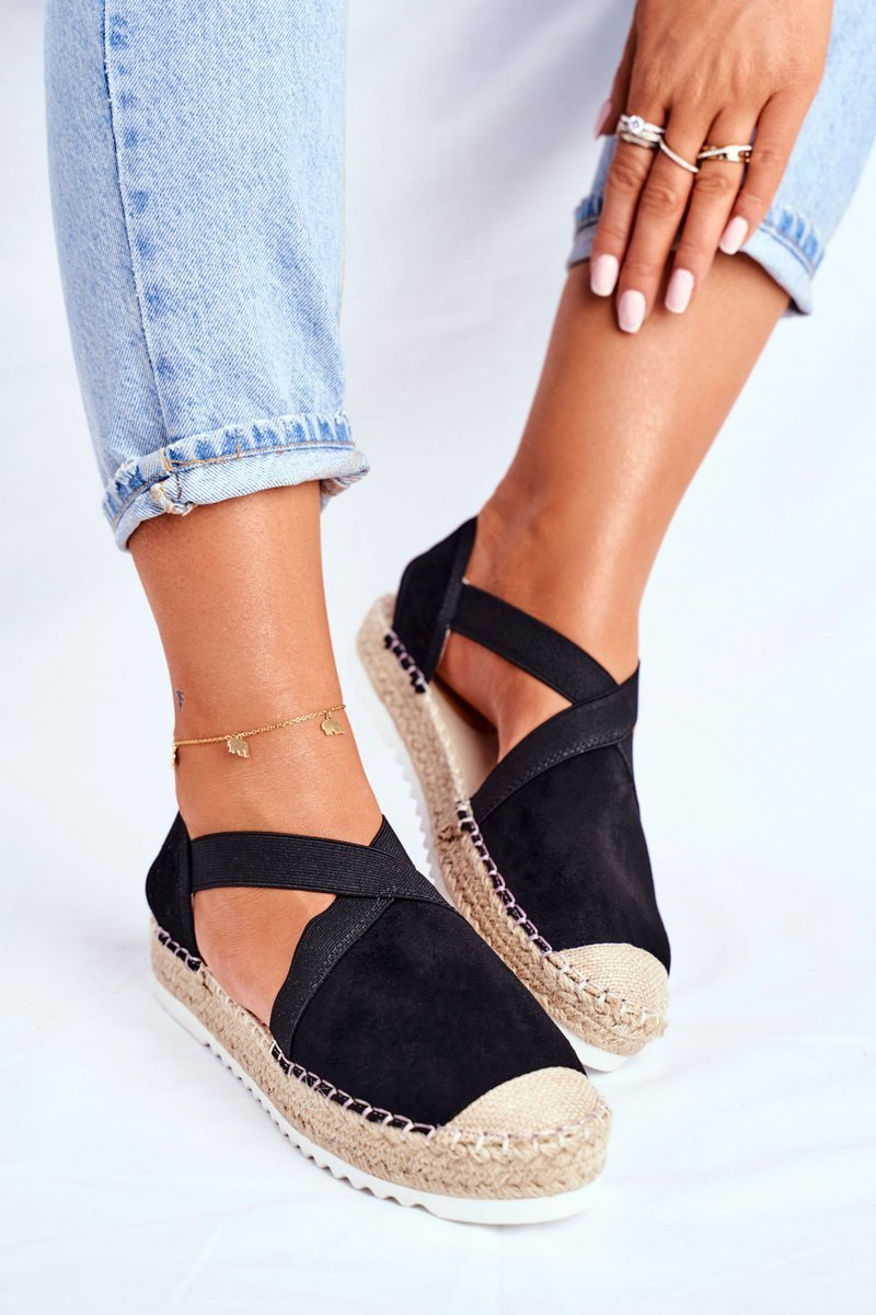 Pohodlné, espadrilles na vysokej plošine s výrezmi bude ideálny na letné výlety. Horný materiál bude zodpovedať všetkému. Pletený šnúrku okolo chodidla a pohodlné montáž elastiky. Pri výbere veľkosti navrhnite tabuľku veľkosti.