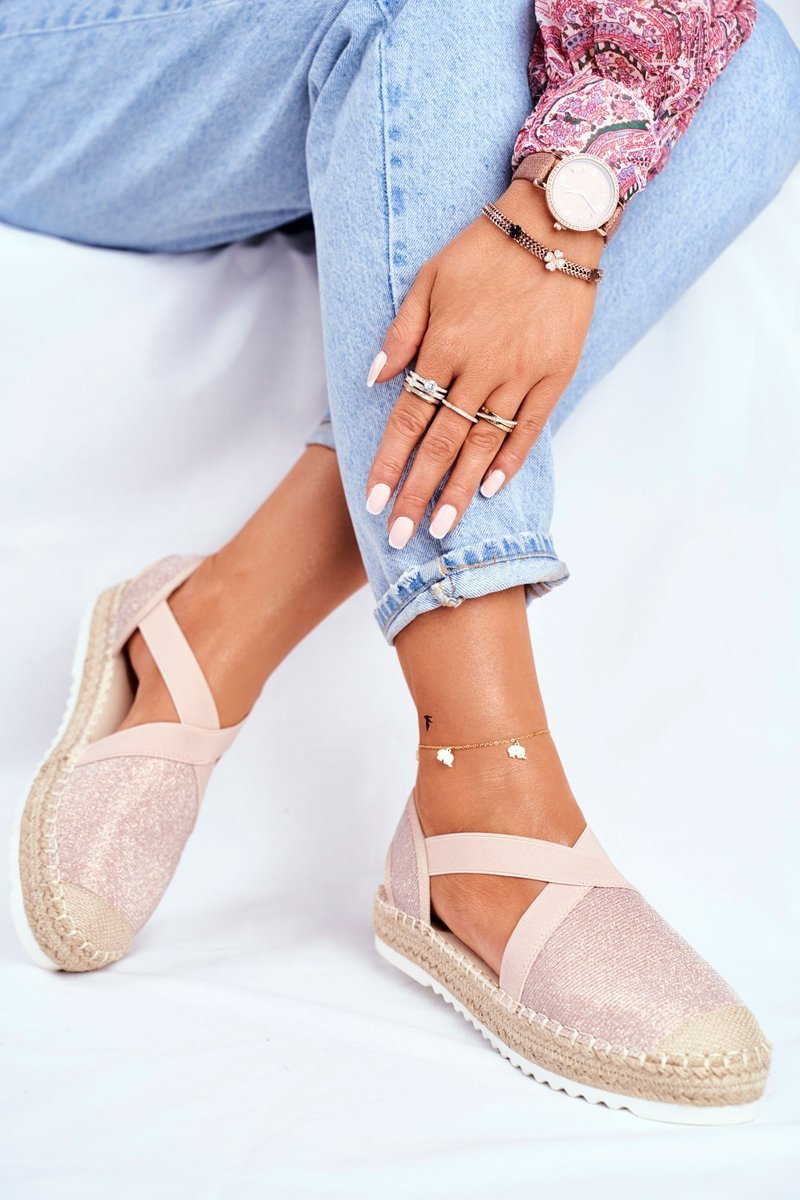 Dámske espadrilly s strihom -out Pink Brocade Motív