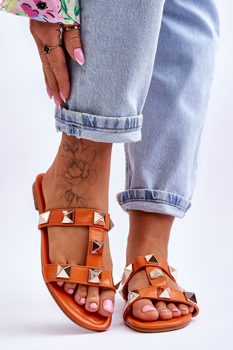 Dámske flip -flops s veľkými cvočkami oranžovej orku