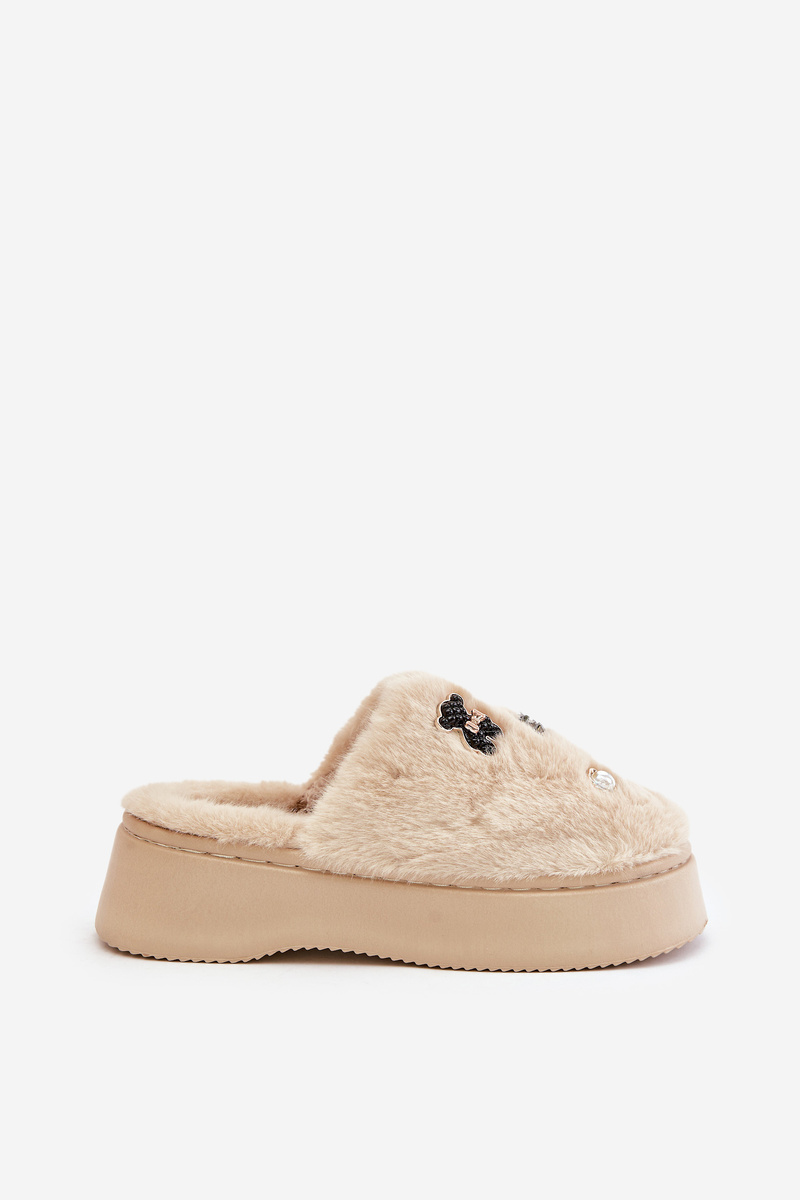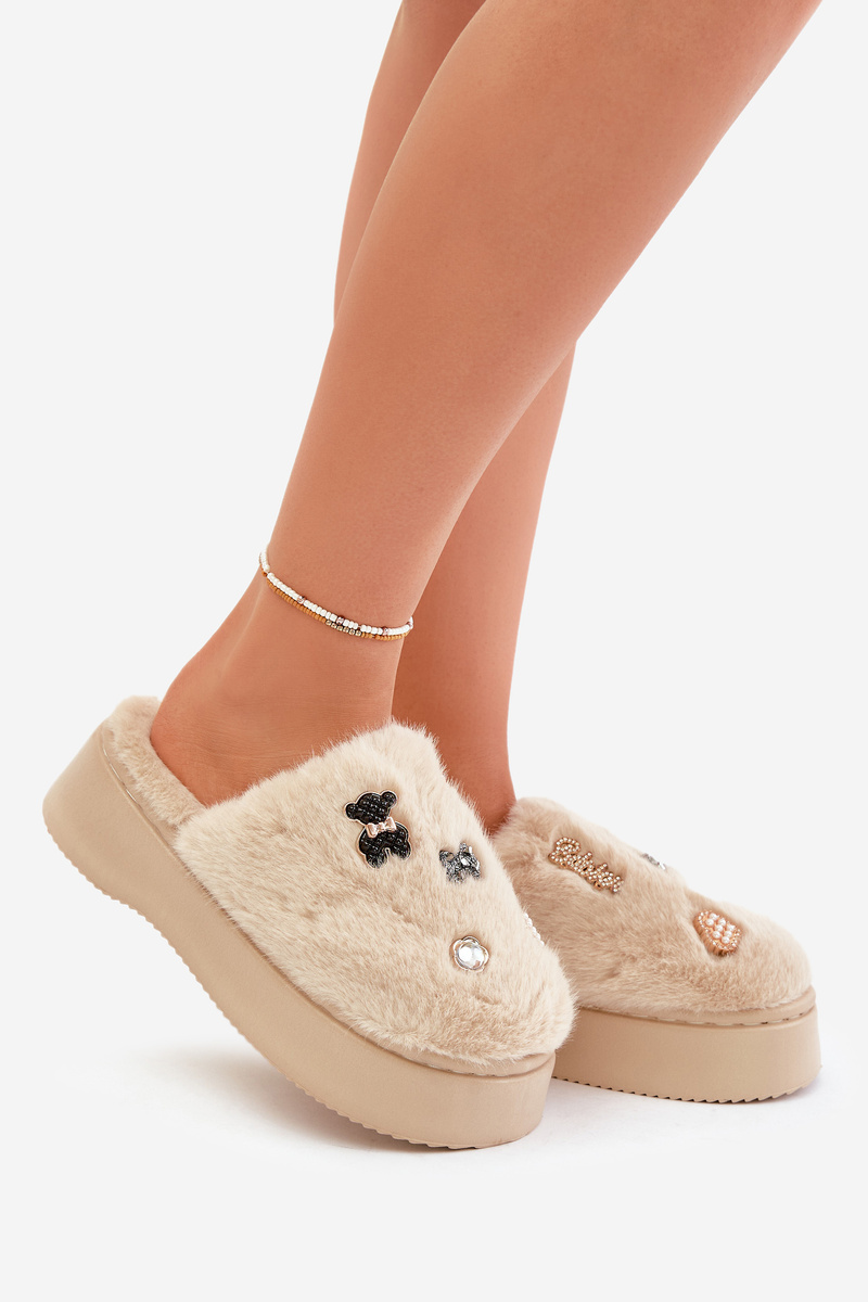 Dámske Fuzzy Papuče Na Hrubej Podeške S Pripínakmi Béžové Zintoria