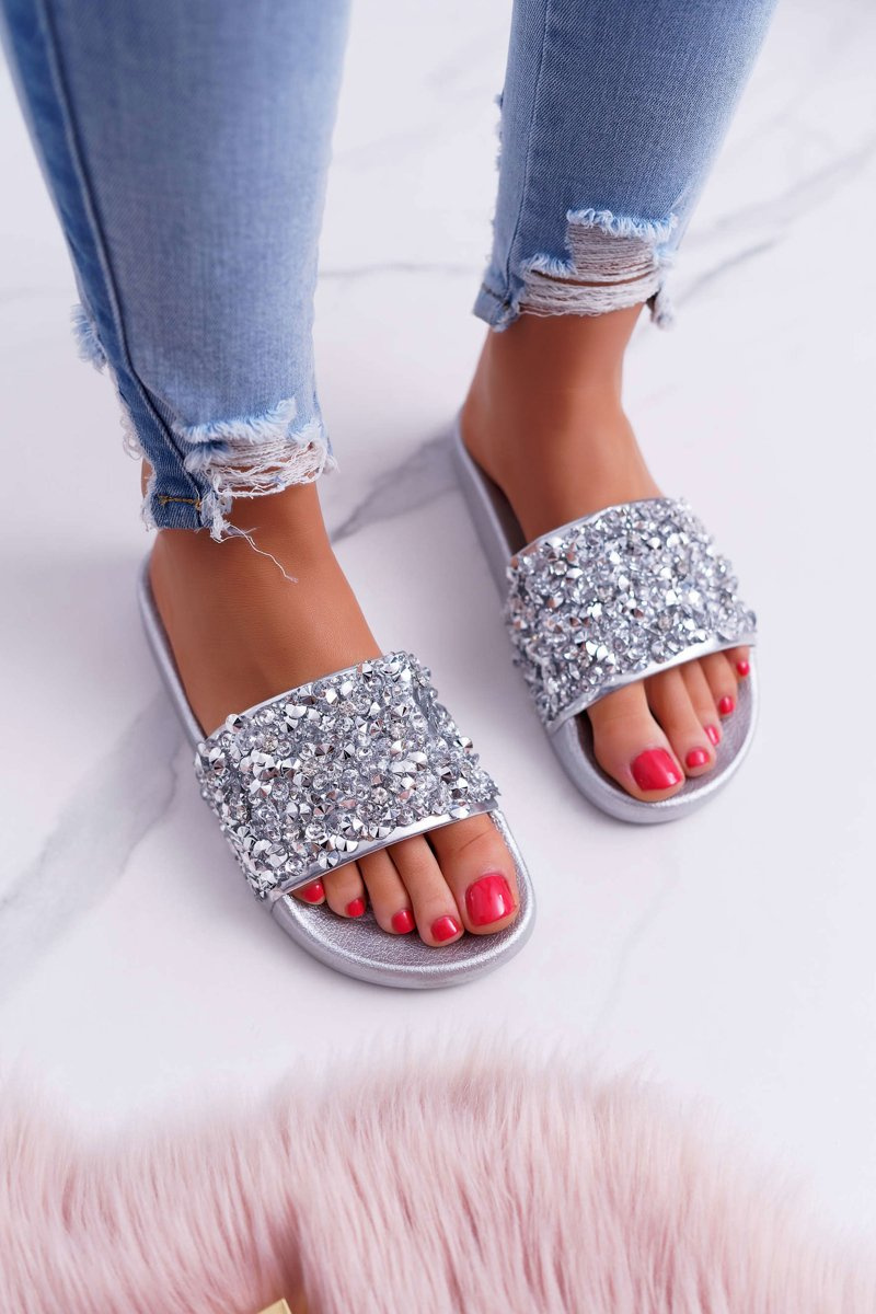 Dámske glamour strieborné papuče