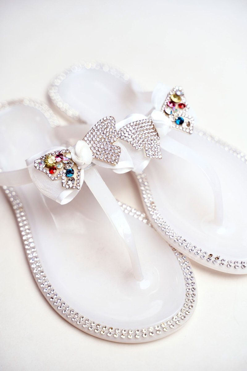 Dámske gumové flip -flops biele flip -flops lissy kamienky