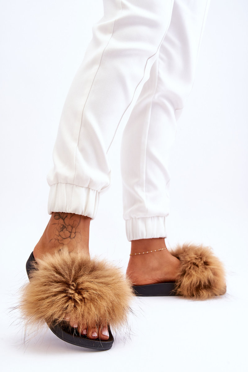 Dámske gumové žabky s hnedou luxusnou kožušinou