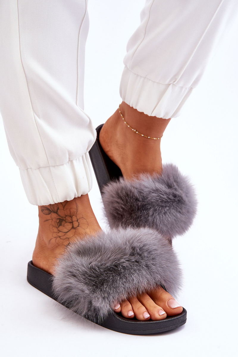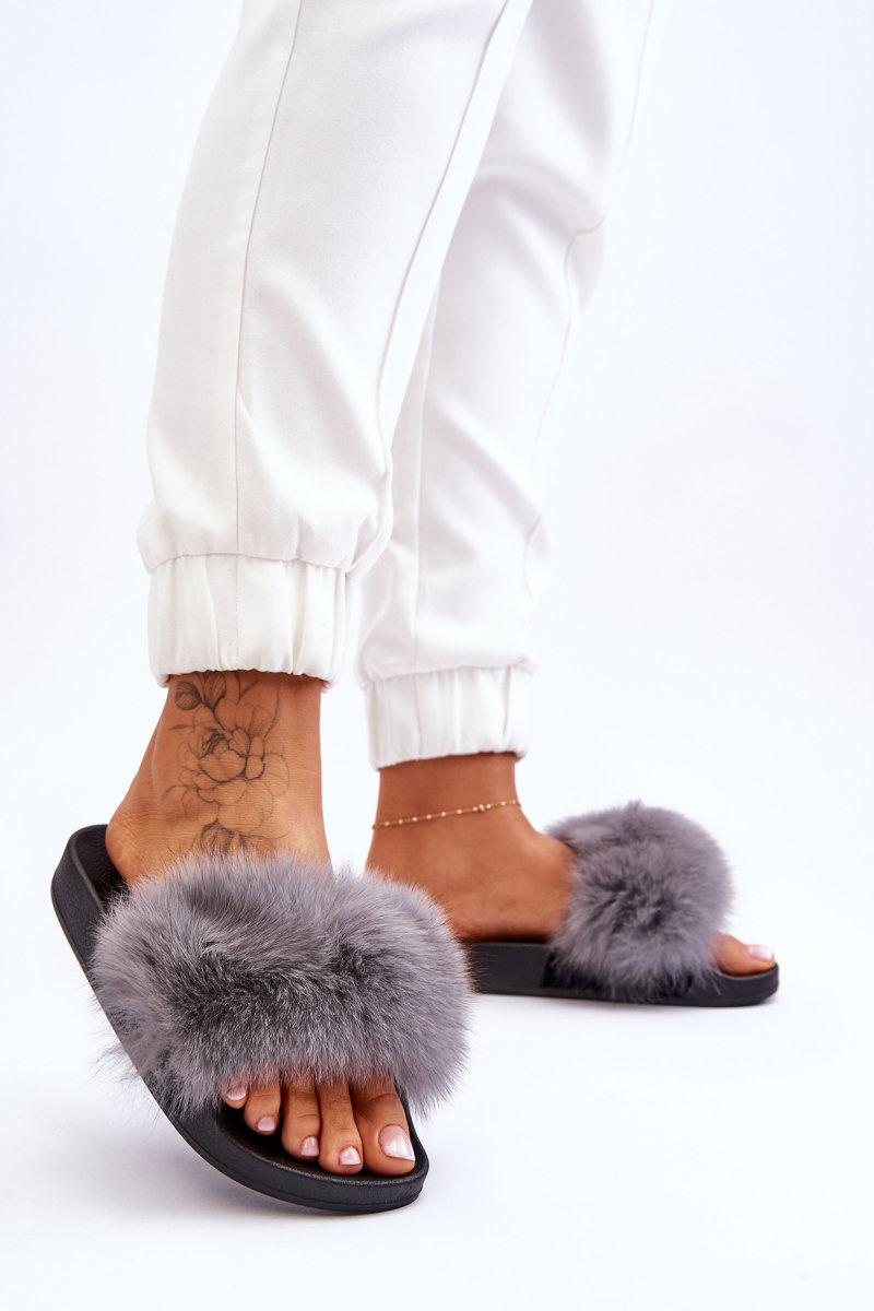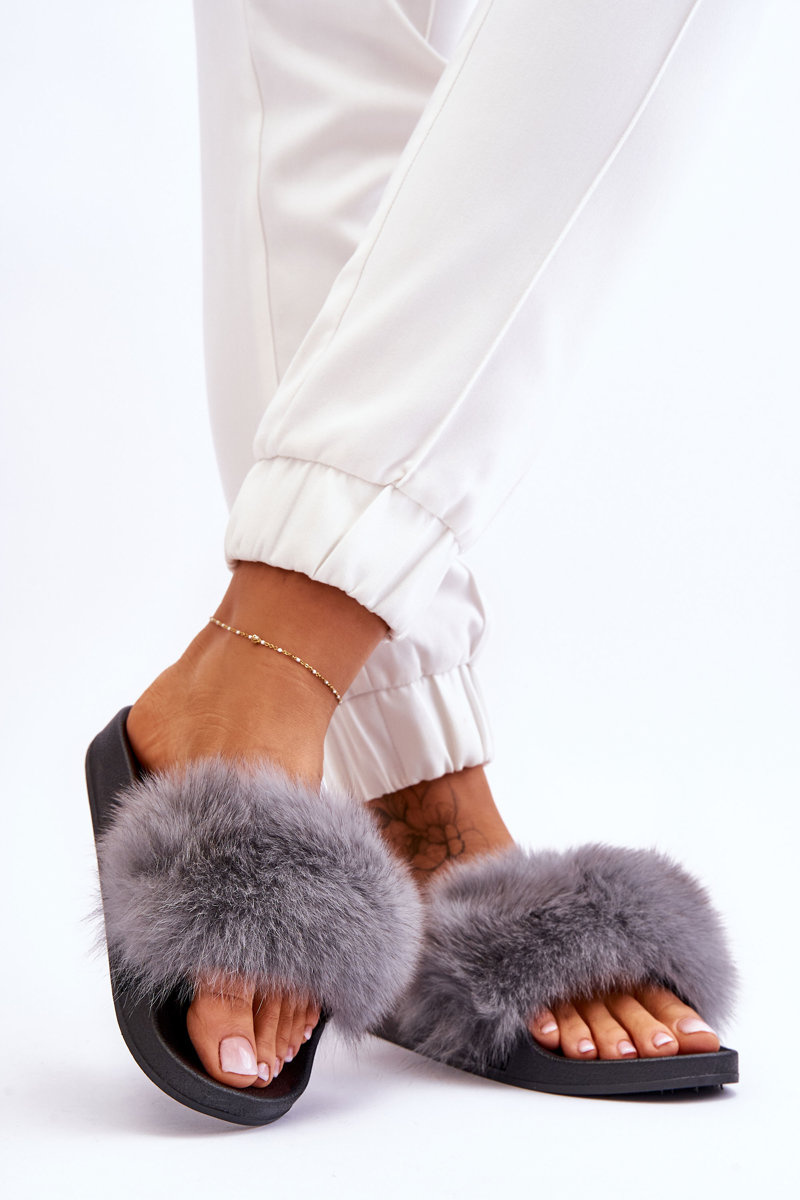 Dámske gumové žabky so sivou luxusnou kožušinou