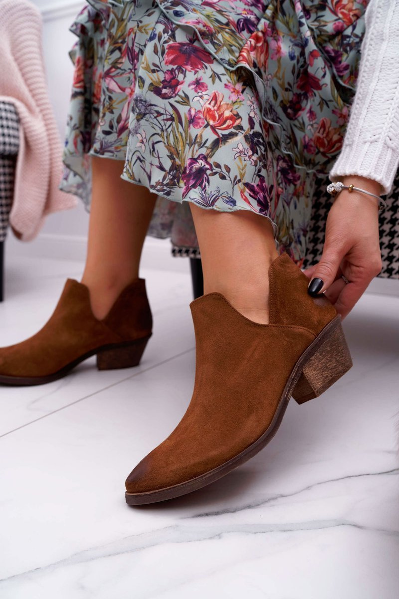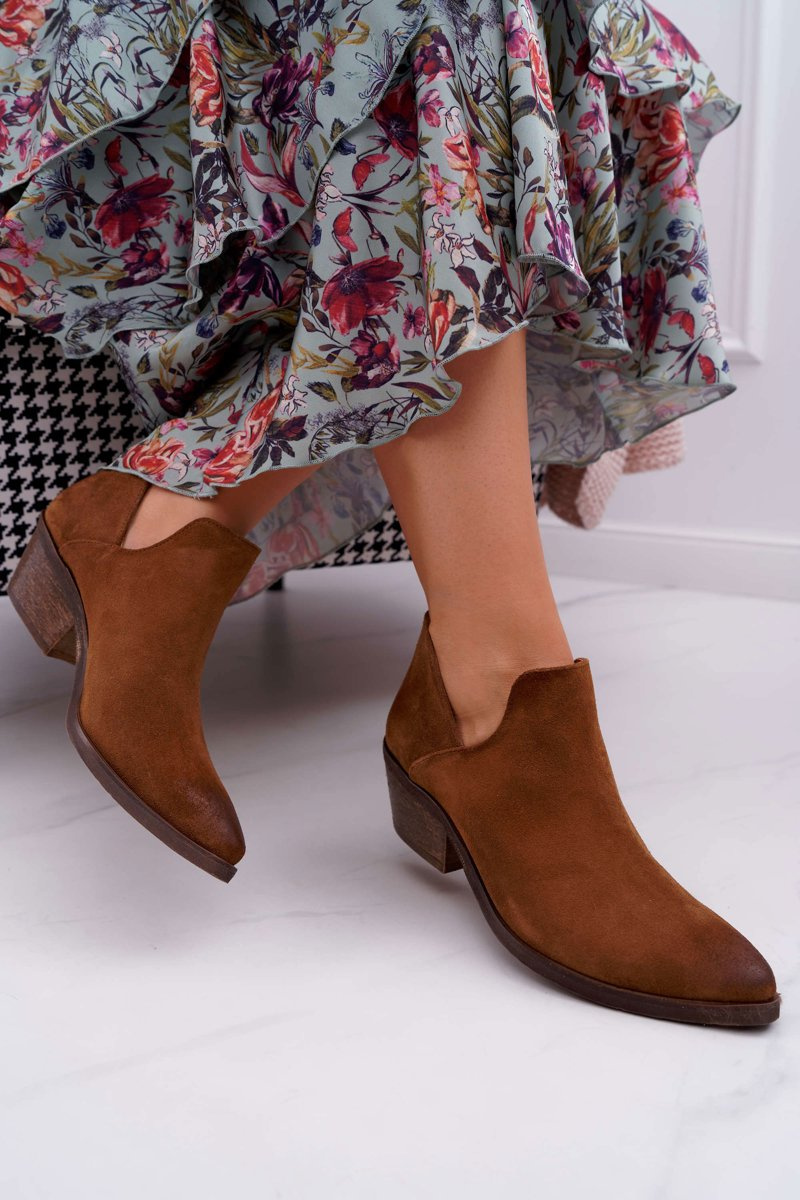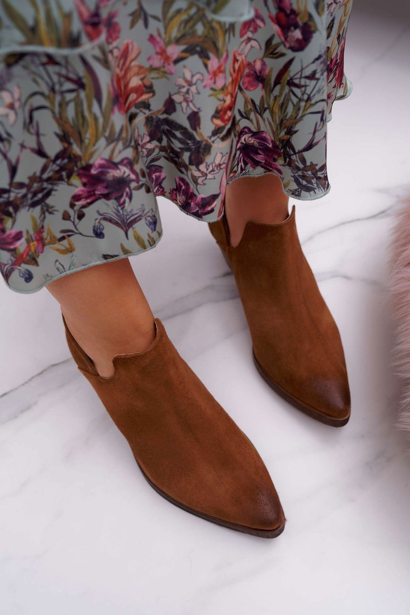 Boots nie sú len topánky pre chladné dni. Sú tiež skvelé pri vytváraní stylizovania jari. Topánky majú jemné výrezy vo výške členkov a plochú pätu, ktorá sa v tejto sezóne stala veľmi módnou. Čižmy sú úplne vyrobené zo semišovej kože. Poľský produkt, ktorý nám zaručuje pohodlie a vysokú kvalitu. Ideálne pre vzdušné šaty a džínsové nohavice. Pri výbere veľkosti navrhnite tabuľku veľkosti.