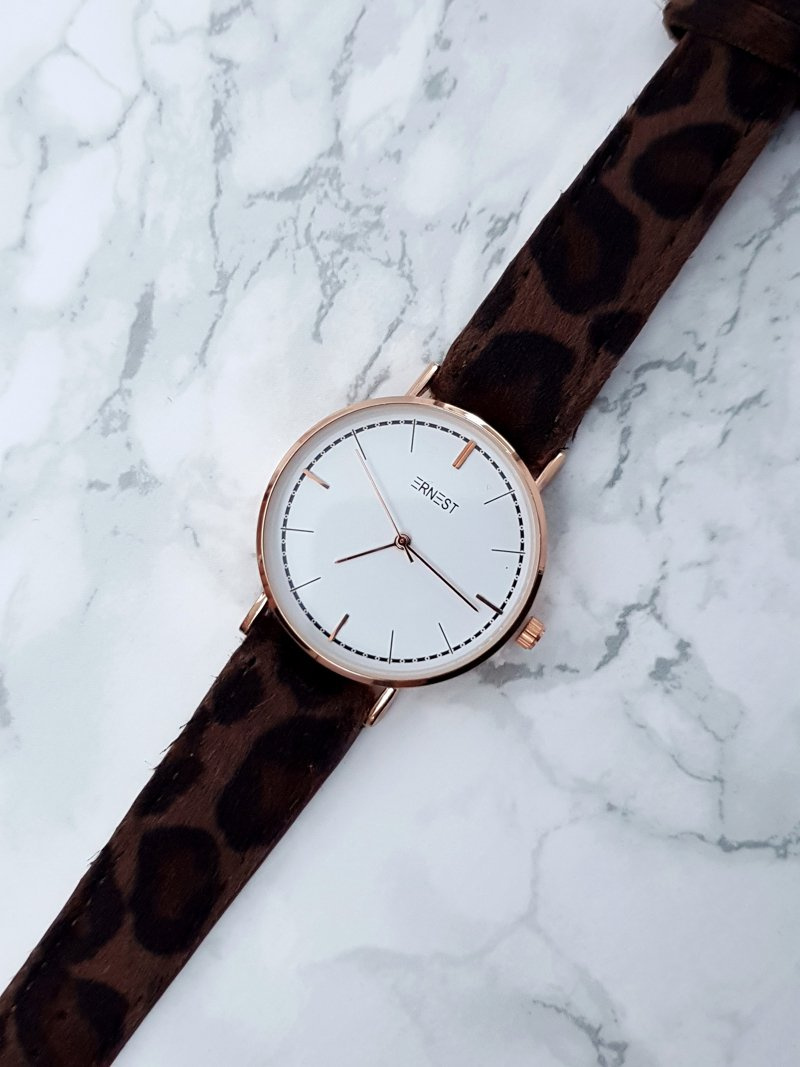 Dámske hodinky Ernest Panthere! Najnovší model s krásnou, štýlovou obálkou a nastaviteľným pásom. Je to ideálna voľba pre elegantné ženy! Zmestí sa tak každodenné štylizácie a elegantnejšie. Nečakajte už dlhšie, urobte si určitú eleganciu v najvyššej kvalite. Originalita je daná pásom leoparda. Každé hodinky sú zabalené do dekoratívnej škatule.