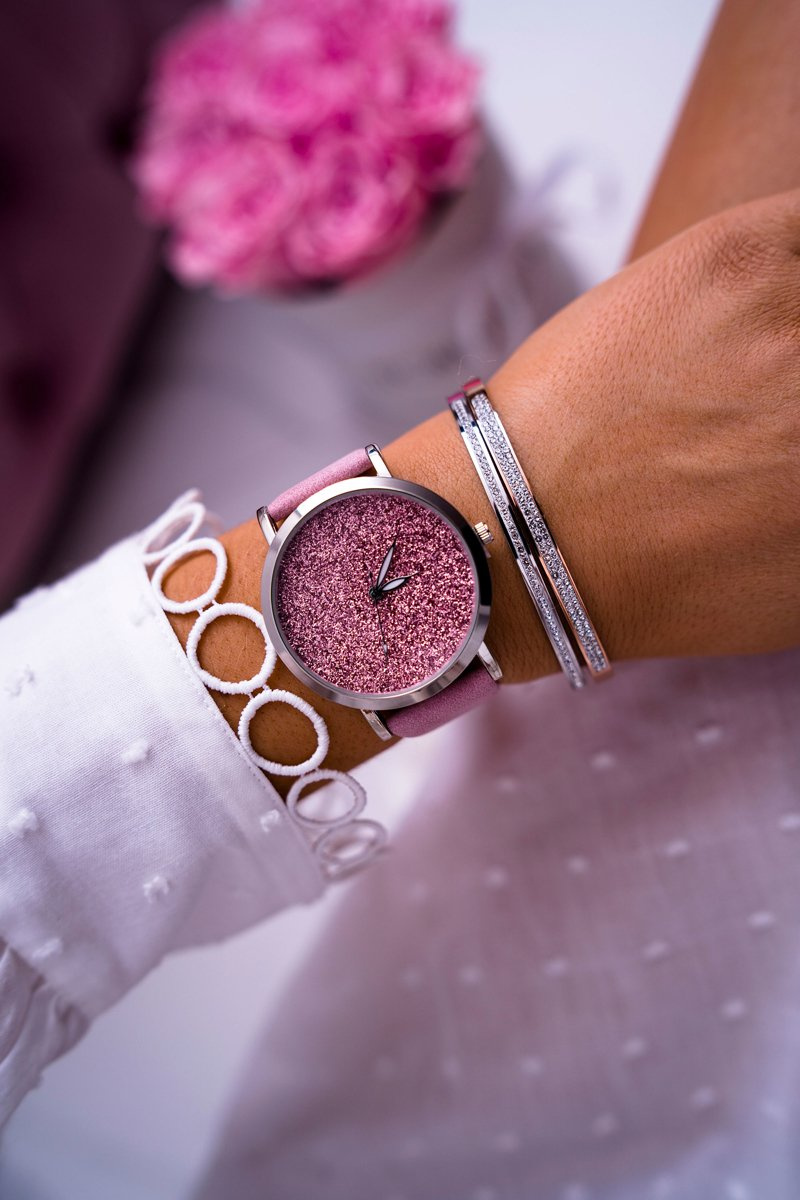 Dámske hodinky Ernest s trblietavými ružovými tiguan