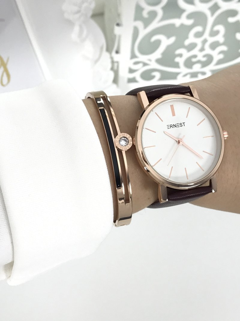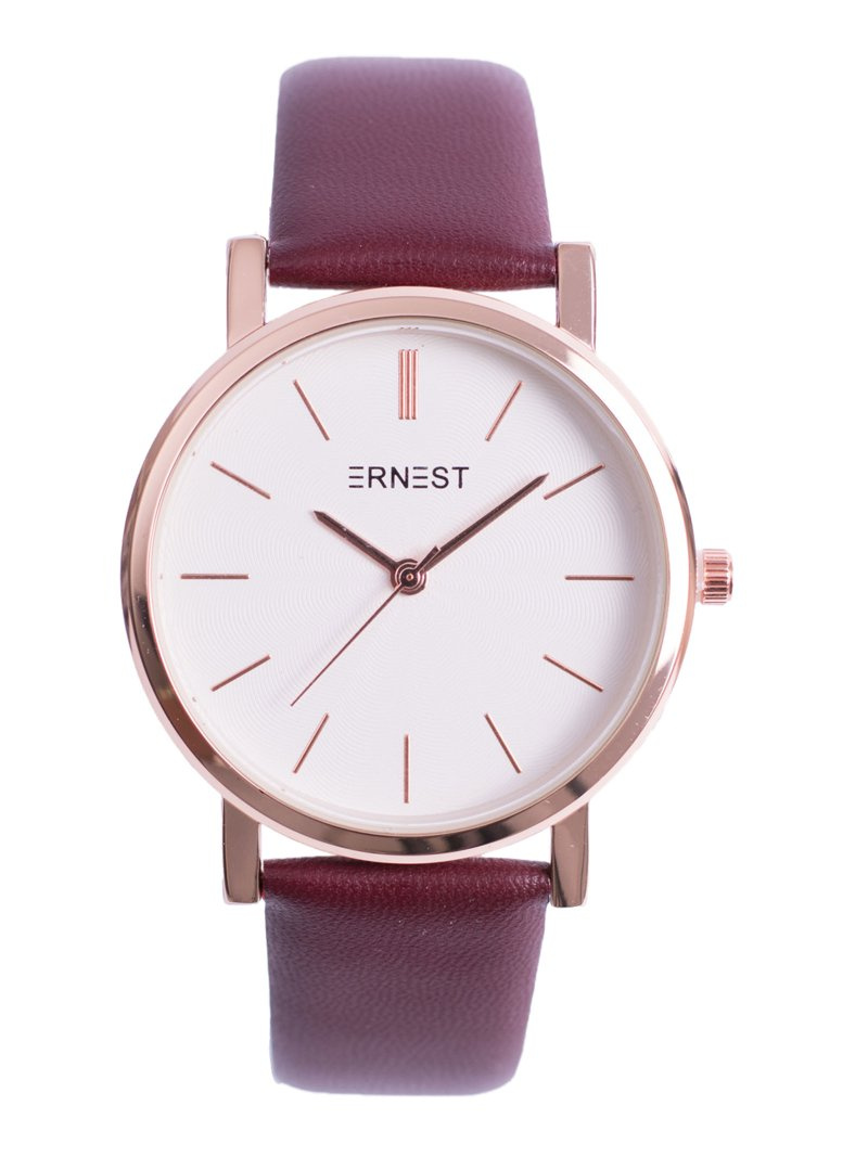 Ernest Vega Watch je pochúťka vytvorená pre ženy, ktoré milujú vkusné doplnky nielen pre elegantné, ale aj pre každodenné štylizácie. Hodinky majú ploché sklo, vďaka čomu vyzerá ešte lepšie na ruke a zároveň je čitateľnejší. Jemný popruh vyrobený z ekologickej kože s možnosťou prispôsobenia otvorov, zlatú obálku vyrobenú z chirurgickej ocele. Vysoko kvalitný mechanizmus a obálka.
