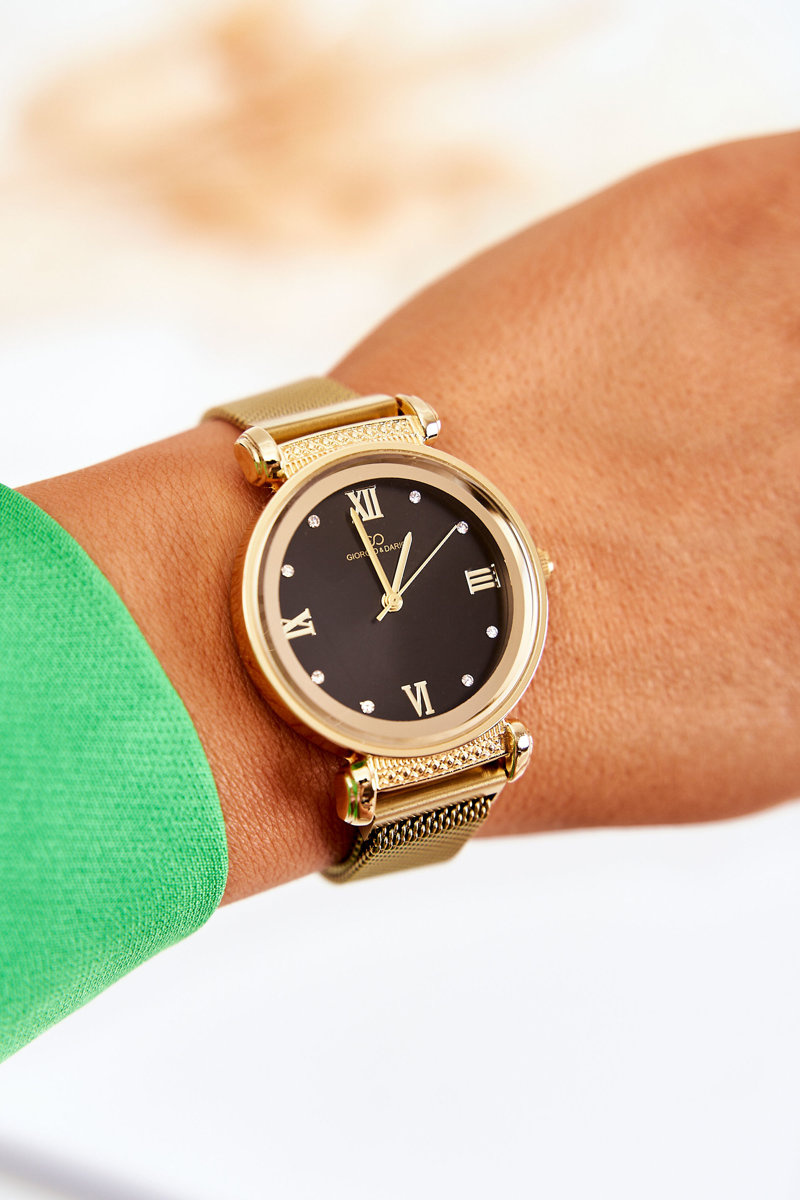 Dámske hodinky Giorgio a Dario so zlatým a čiernym magnetovým náramkom