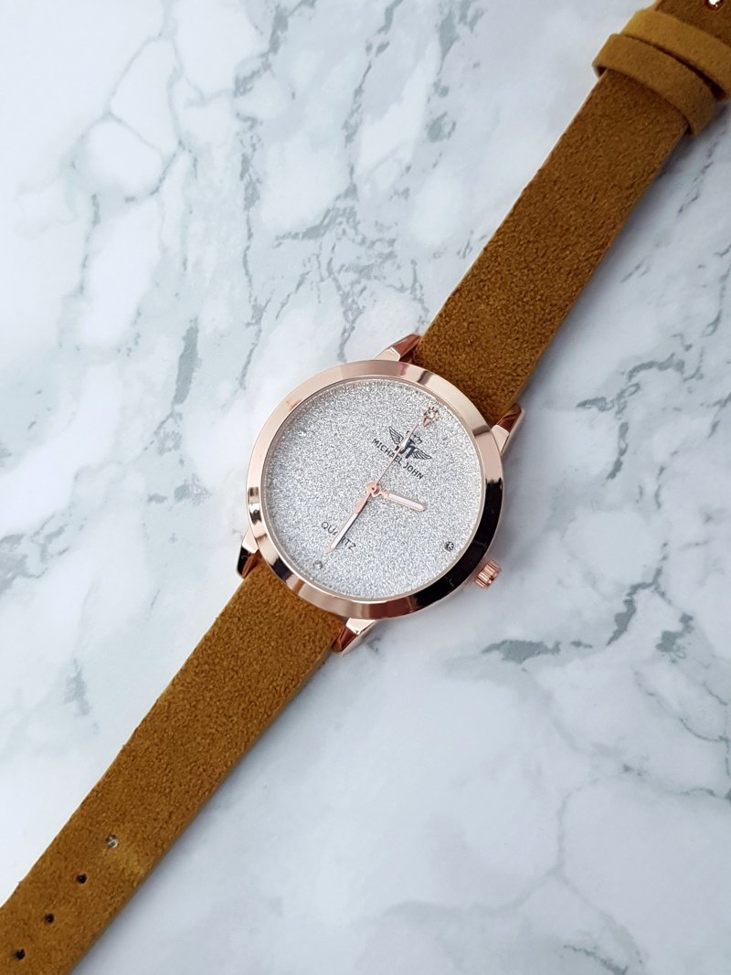 Dámske hodinky Michael John Evento Mustard Suede Bacco Belt