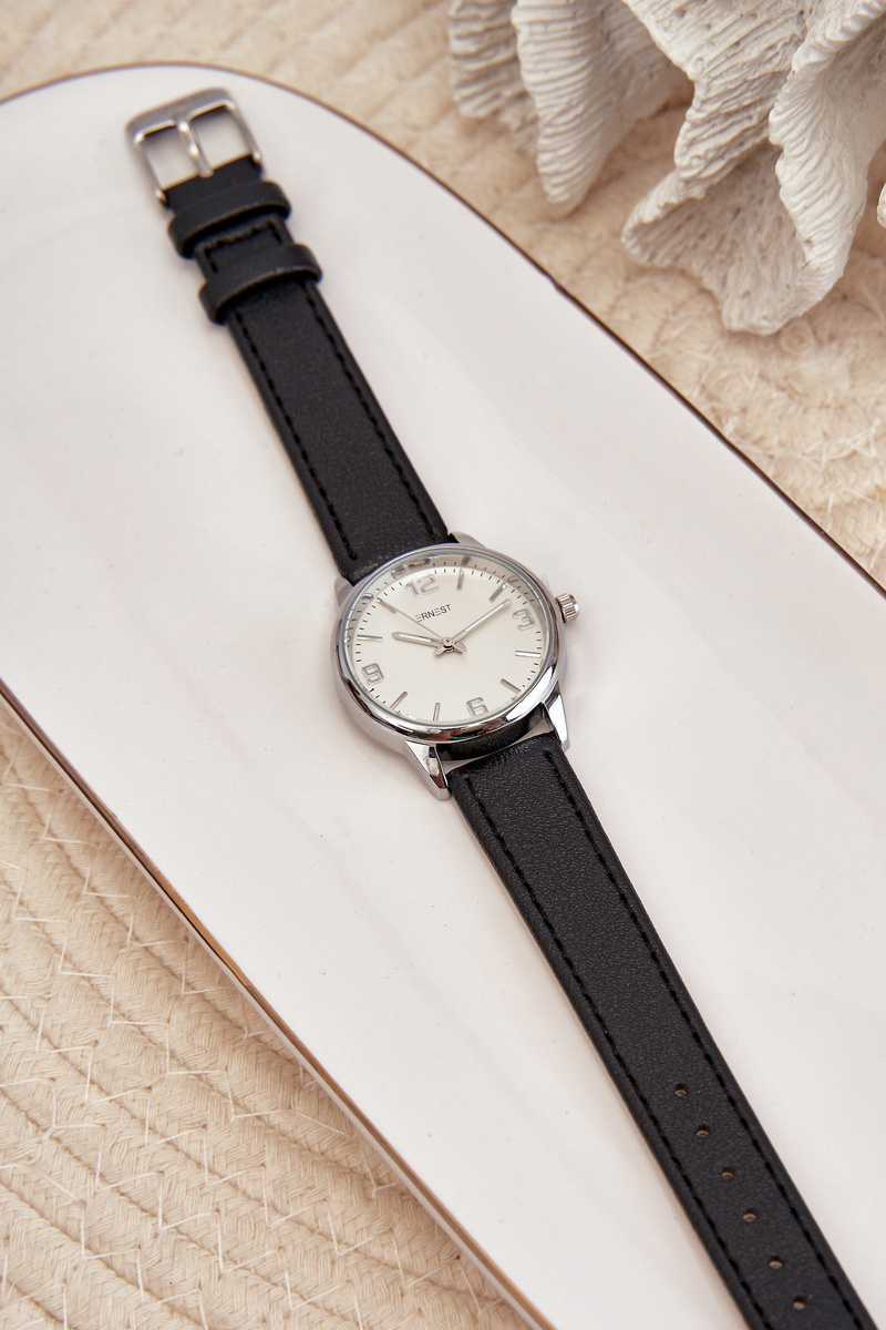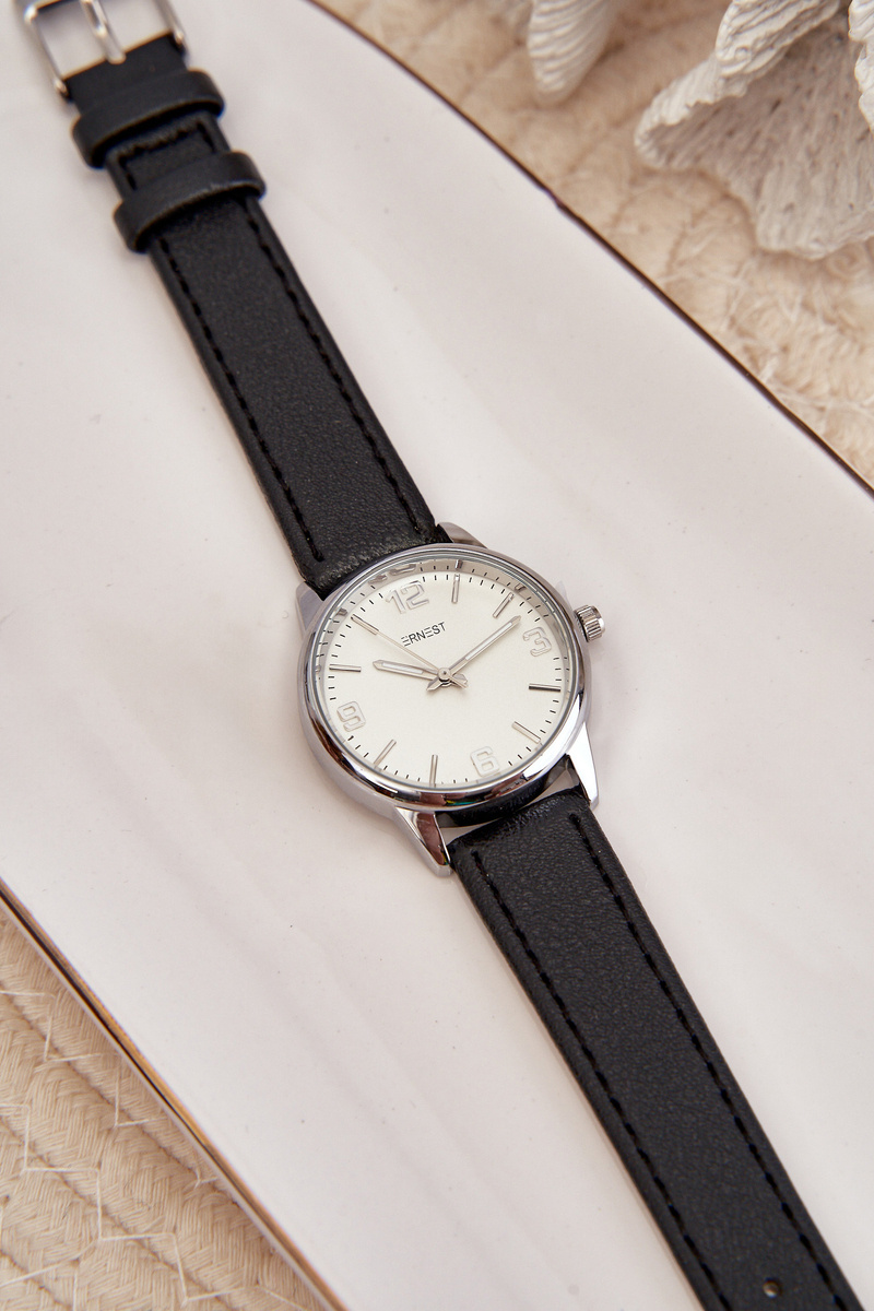 Dámske hodinky na eko koženom remienku čierne Ernest E62177