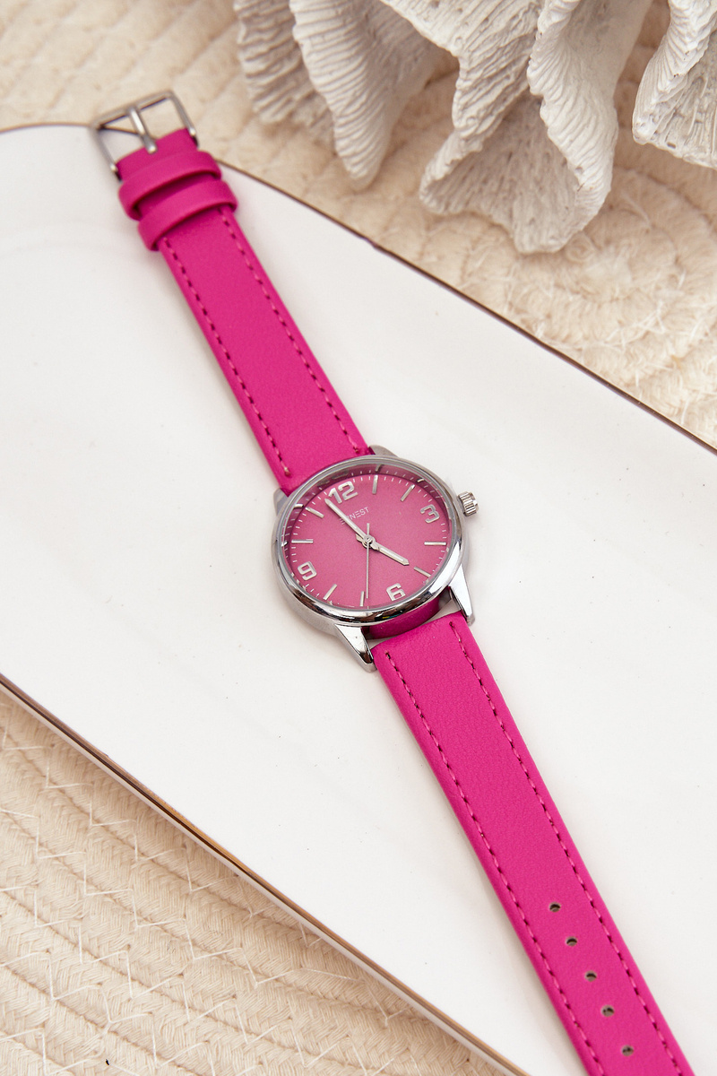 Dámske hodinky na eko koženom remienku fuksiové Ernest E2177