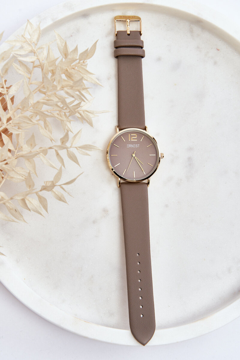 Dámske hodinky na koženom popruhu Ernest E62001MD Grey