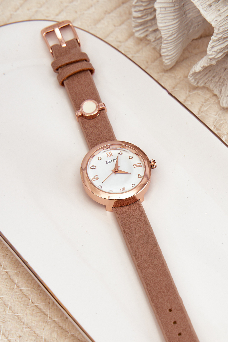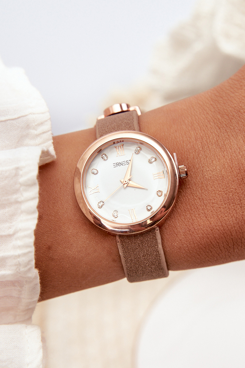 Dámske hodinky na tenkom ekokožennom remienku hnedé Ernest E62146