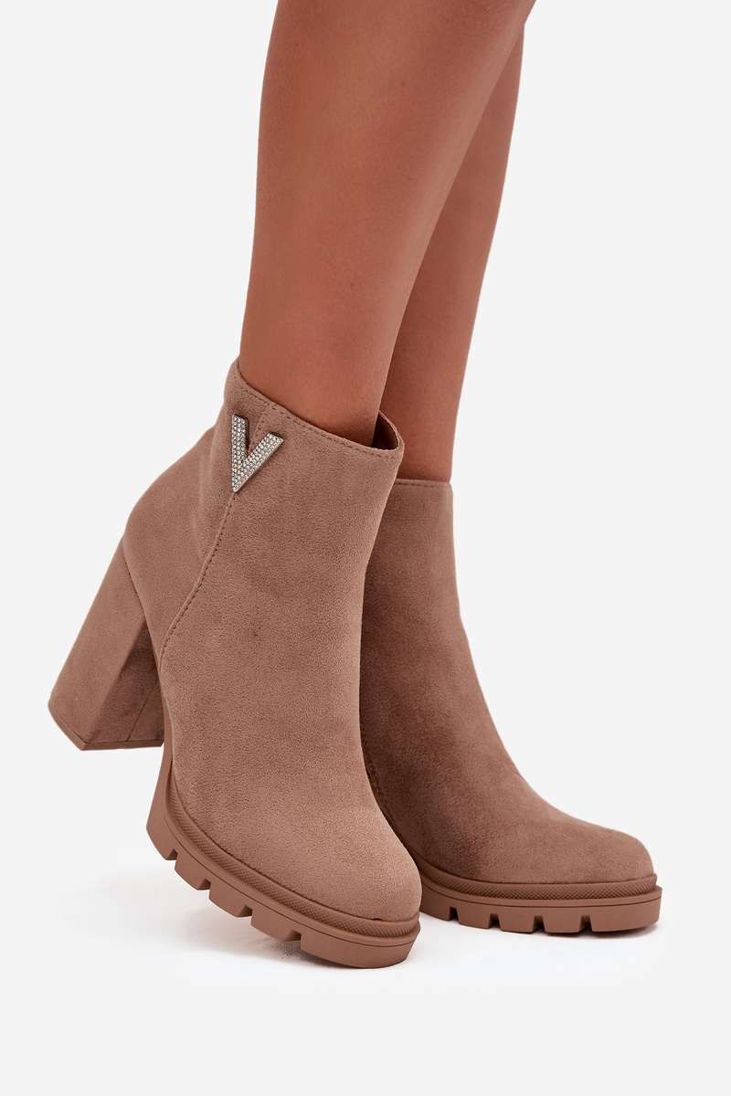 Dámske izolované členkové topánky na podpätku s ozdobným detailom béžové Briella