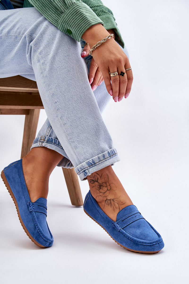 Dámske klasické semišové modré mokasíry Ivana