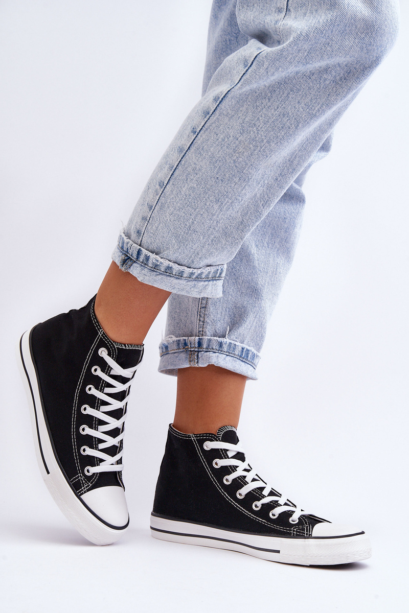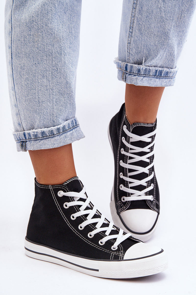 Dámske klasické vysoké čierne a biele tenisky Remos