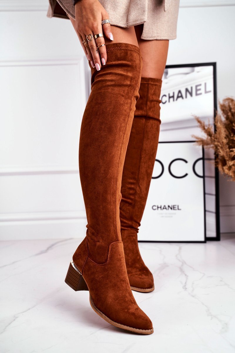 Dámske kolenné topánky Eco-Zamsz Camel sa nemôže zastaviť
