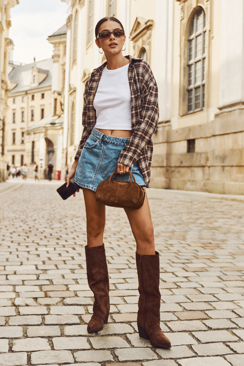 Dámske cowboy čižmy sú módny model inšpirovaný západným štýlom, ktorý sa skvele hodí k aktuálnym trendom. Vyrobené z mäkkého eko semišu, vyzerajú štýlovo a elegantne, a zároveň sú ľahké a pohodlné na nosenie. Položené na stabilnom päte, predlžujú siluetu, a špicaté špičky pridávajú charakter a zdôrazňujú ženský štýl. Model je zapínaný na praktický zips, čo uľahčuje obúvanie a vyzliekanie. Jemné švy a výrazná forma robia tieto čižmy skvelou kombináciou s džínsami a koženou bundou, ako aj s šatami alebo sukňami, čo dodáva outfitu výnimočný charakter. Ide o ponuku pre ženy, ktoré ocenia pohodlie, moderný dizajn a originálne akcenty v každodennom oblečení. Pri výbere veľkosti sa riaďte nižšie uvedenou tabuľkou veľkostí. Při výběru velikosti se řiďte tabulkou velikostí.