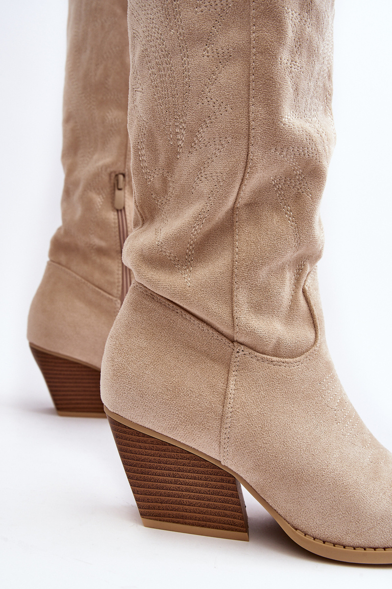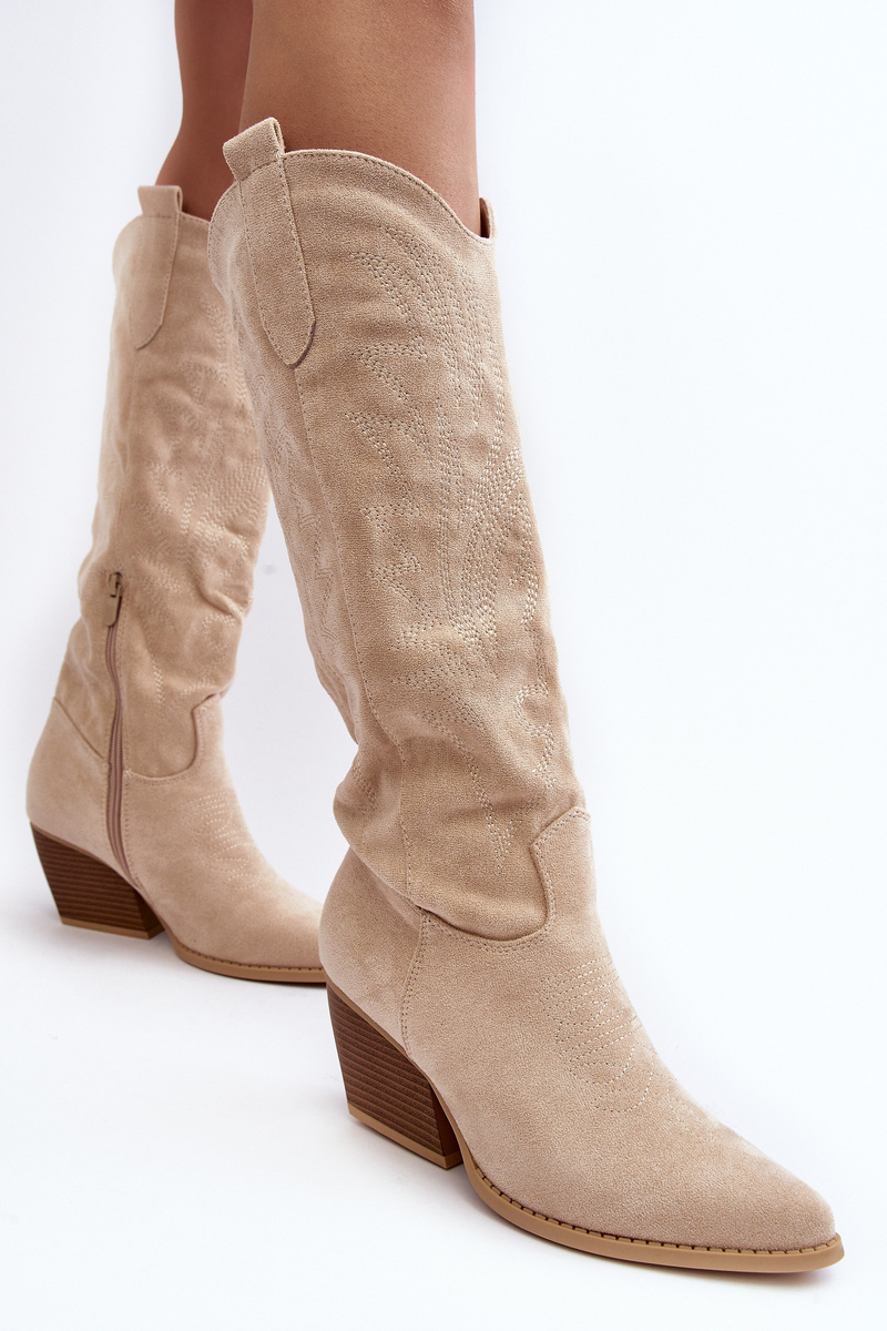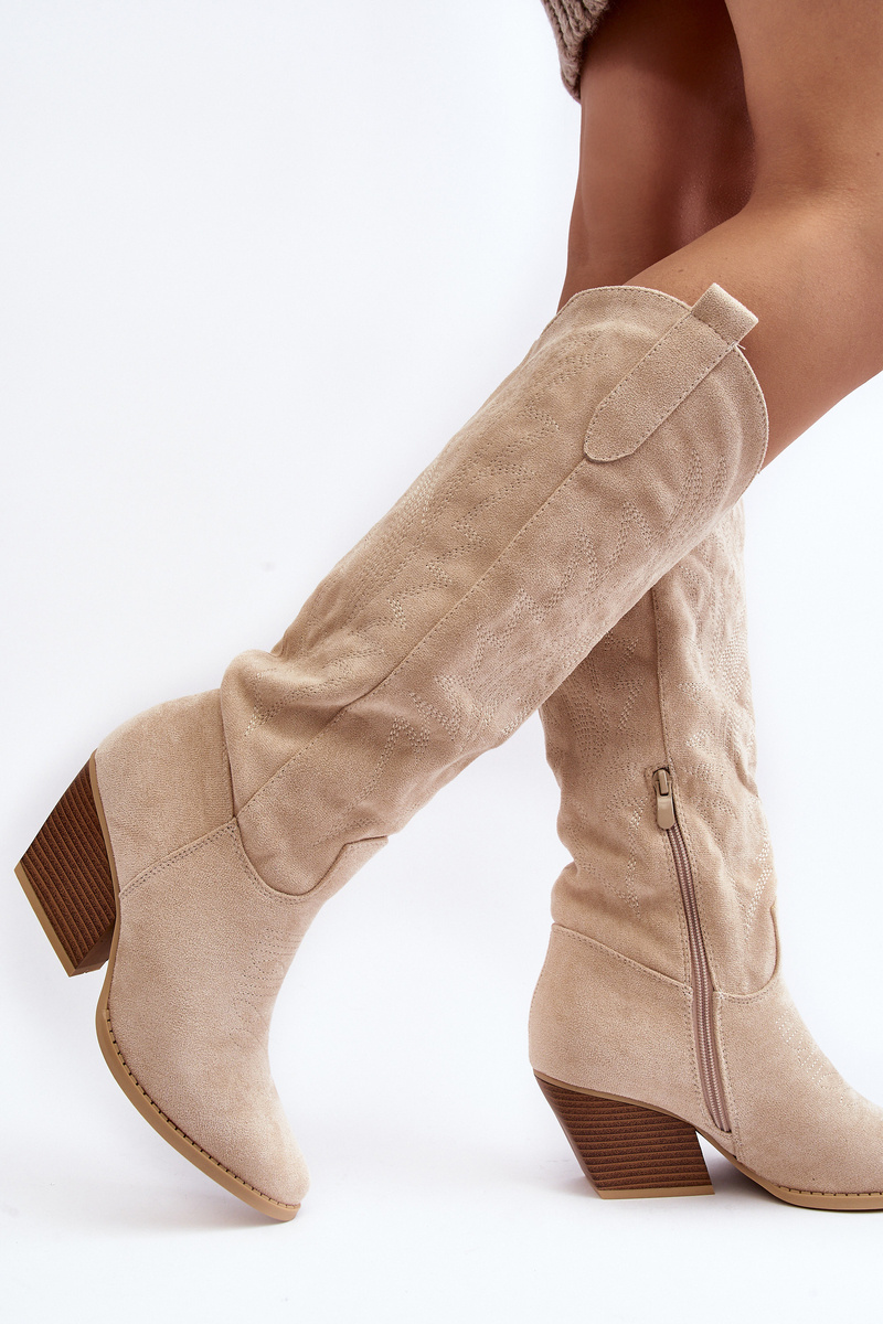 Dámske topánky pred kolenom vyrobeným z ekologického semišu. Podpätky zabudované vo forme nízkeho stĺpika. Nosy v Spitz opticky vymenia nohy. Päta je stuhnutá. Mäkká vložka poskytne pohodlie počas používania. Horná časť zdobená početným prešívaním. Model vložený s ďalším zipsom. Sú skvelé počas jesenných štylizovaní! Pri výbere veľkosti navrhnite tabuľku veľkosti. p>