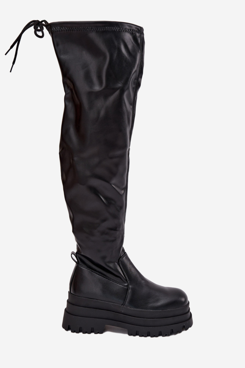 Dámske Kozačky Po Kolena Na Masívnej Platforme Čierne Erisna