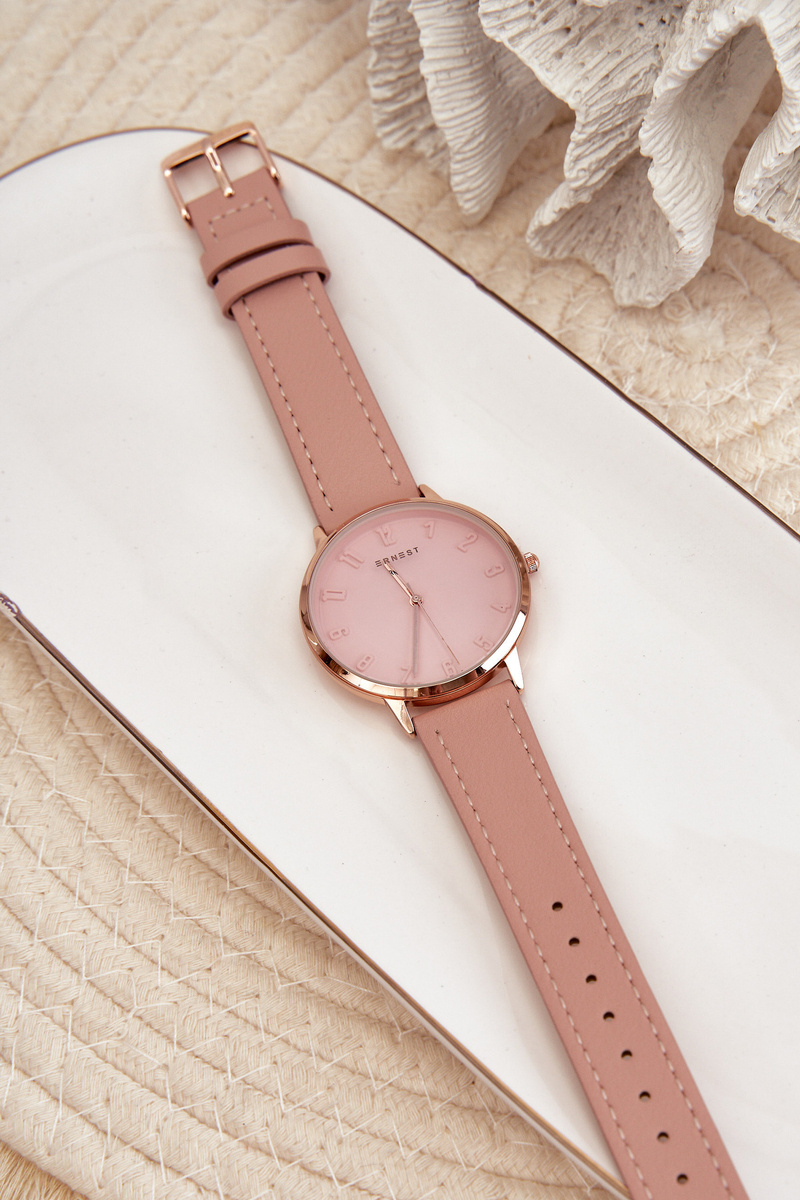 Dámske kožené analogové hodinky bez niklu Ernest ružové E94195