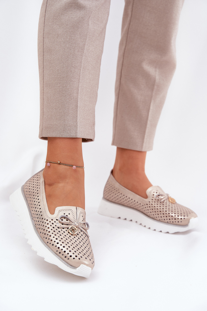 Dámske Kožené Ažurové Polobotky Z Prírodnej Kože D&A LR51-631 Zlaté