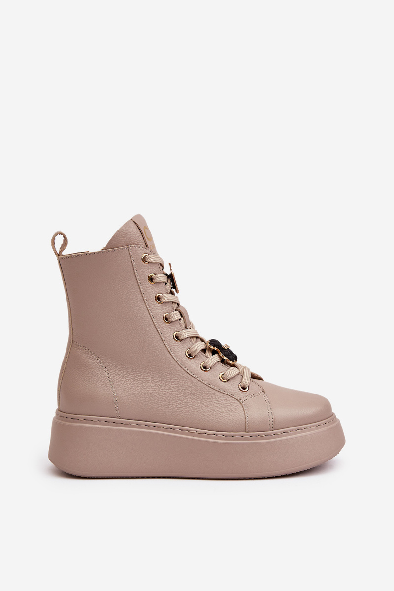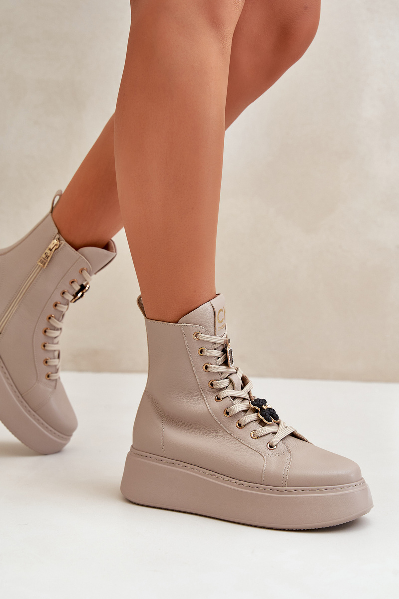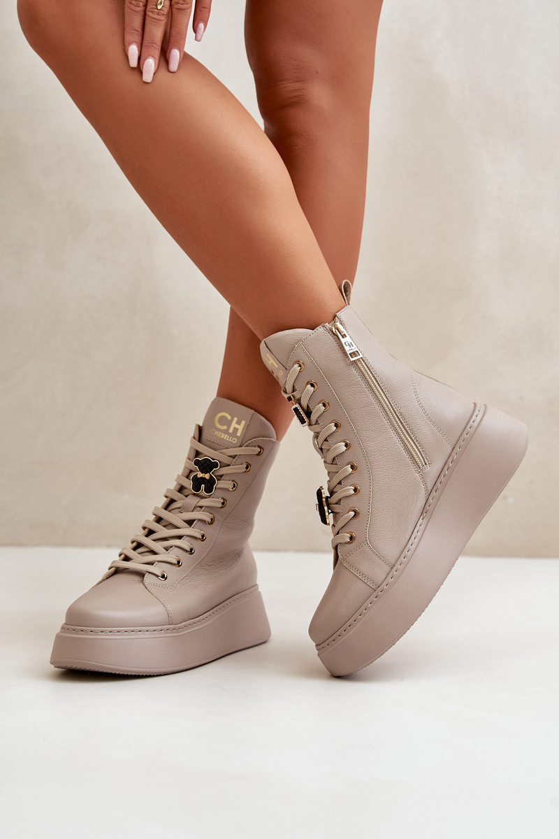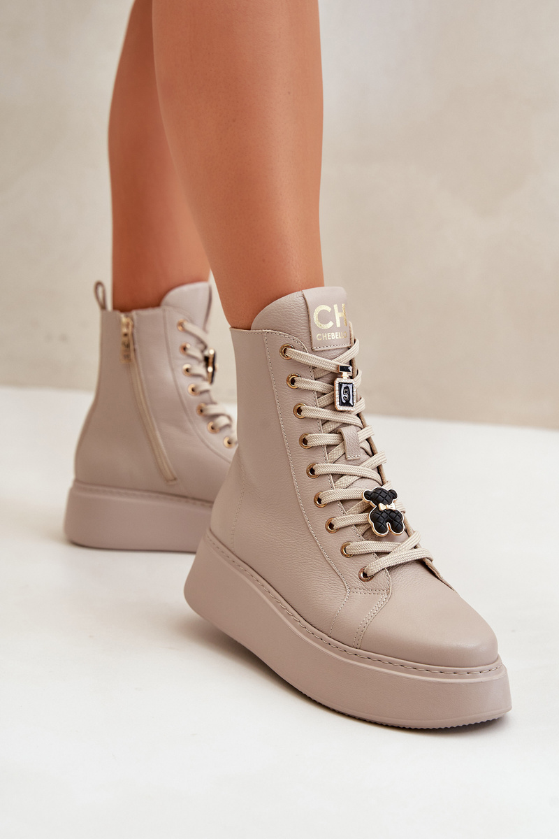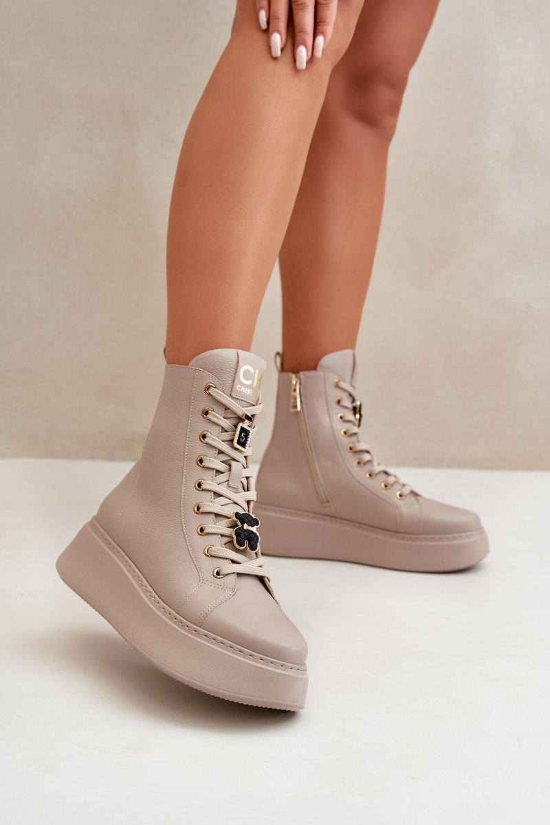 Dámske Kožené Čižmy Worker S Príveskami Béžové CheBello 4294