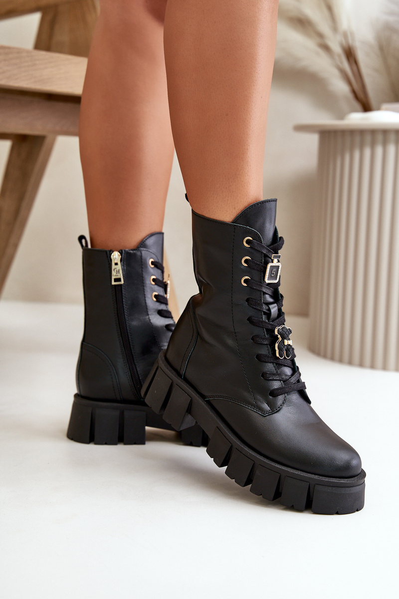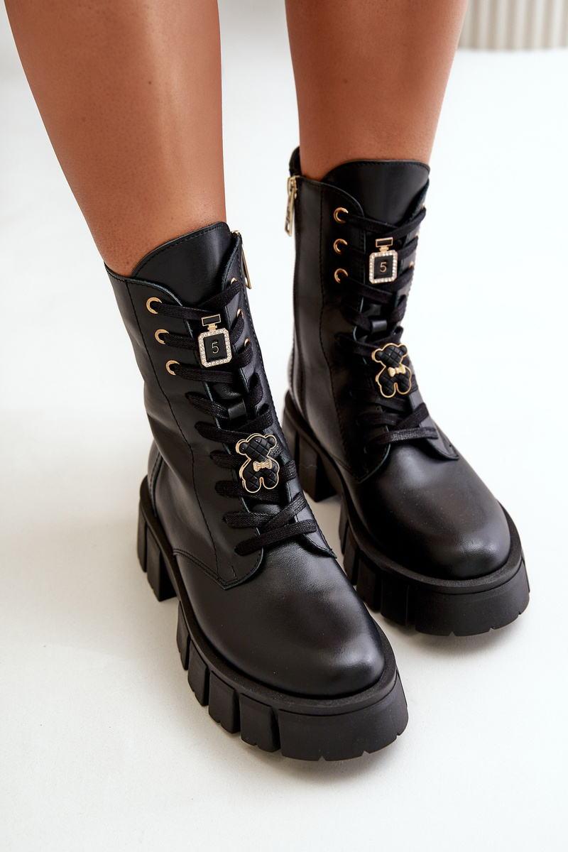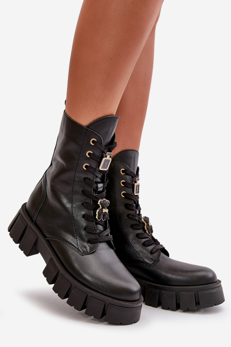 Dámske Kožené Čižmy Workery S Príslušenstvom Čierne CheBello 4247