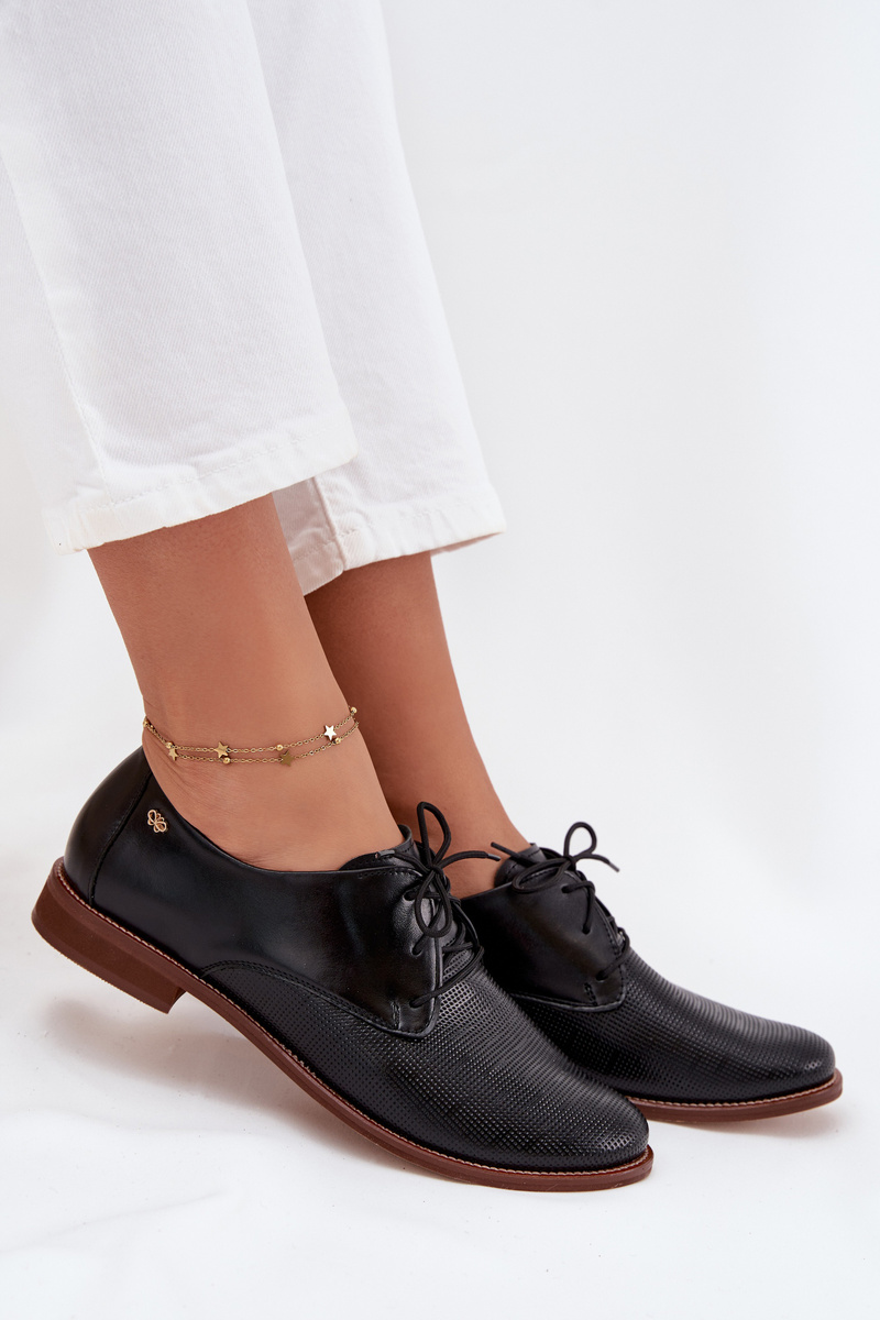 Dámske kožené elegantné šnurovacie topánky Zazoo 4238 Čierne