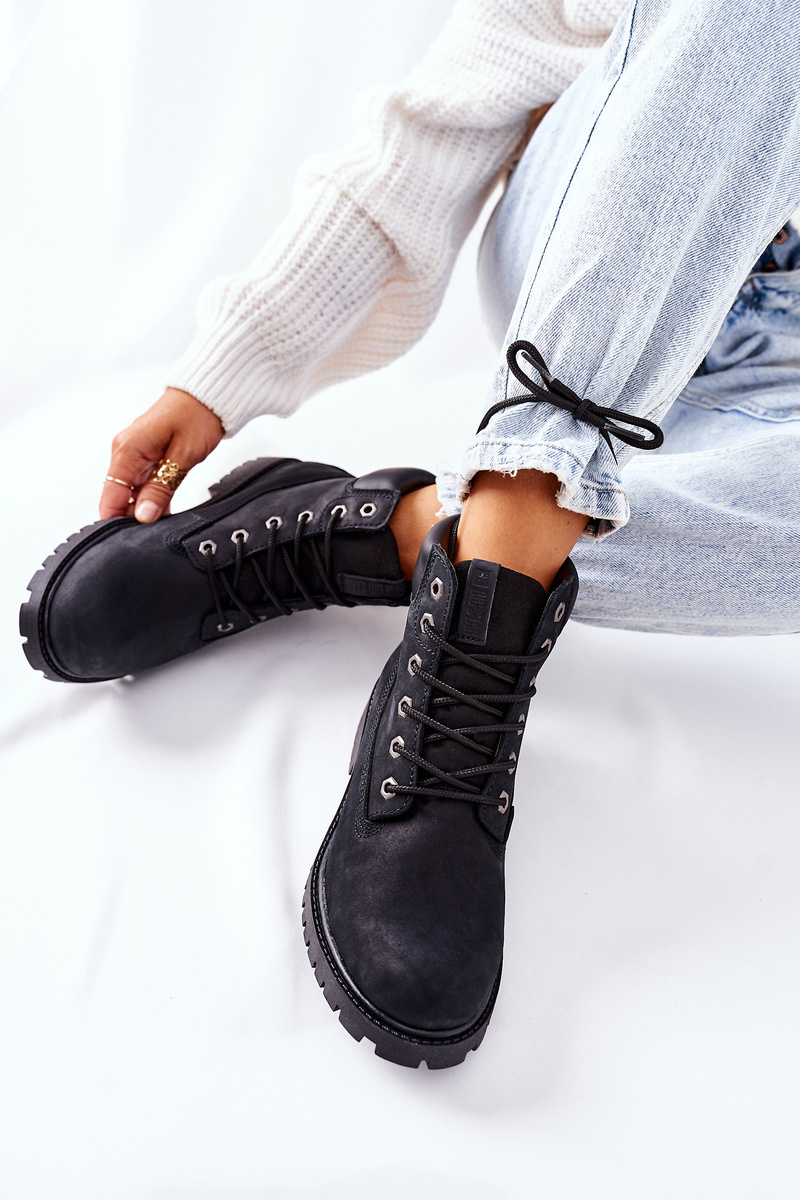 Dámske kožené kožené turistické topánky veľká hviezda II274446 čierna