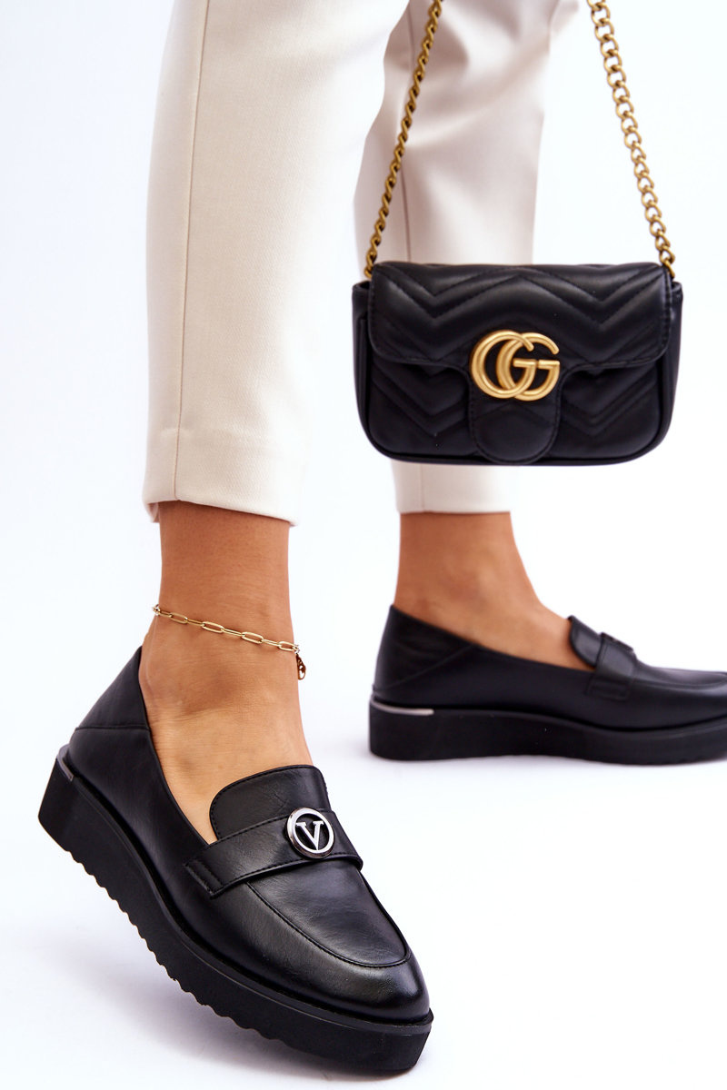 Dámske mokasíny boli vyrobené z vysoko kvalitnej ekologickej kože. Majú koleso s kruhom a písmeno V na prednej strane. Mokasíny boli nastavené na plošinu s nízkym klinom. Mäkká vložka vyrobená z prírodnej kože poskytne pohodlie počas používania. Pri výbere veľkosti navrhnite tabuľku veľkosti. /p>