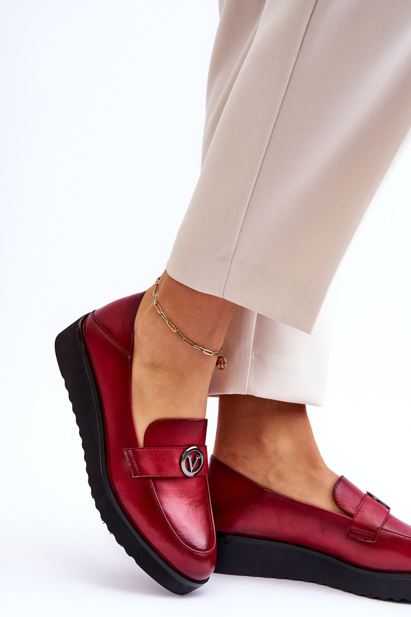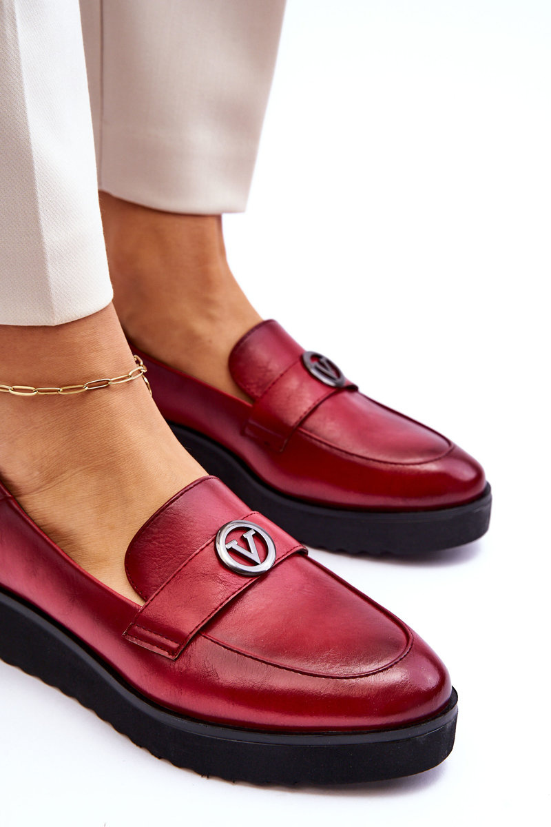 Dámske mokasíny boli vyrobené z vysoko kvalitnej ekologickej kože. Majú koleso s kruhom a písmeno V na prednej strane. Mokasíny boli nastavené na plošinu s nízkym klinom. Mäkká vložka vyrobená z prírodnej kože poskytne pohodlie počas používania. Pri výbere veľkosti navrhnite tabuľku veľkosti. /p>