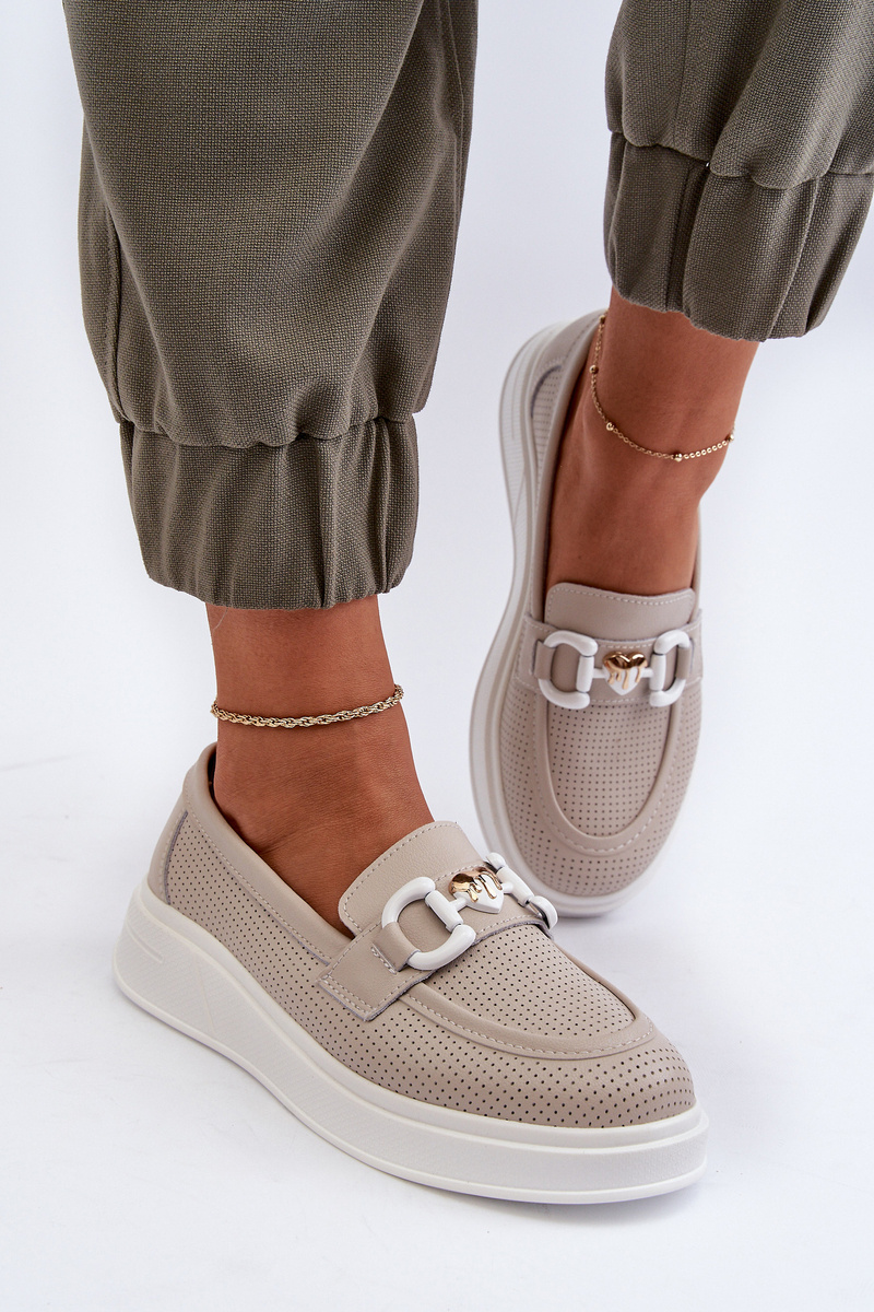 Dámske kožené mokasíny na platforme béžové S.Barski LR720