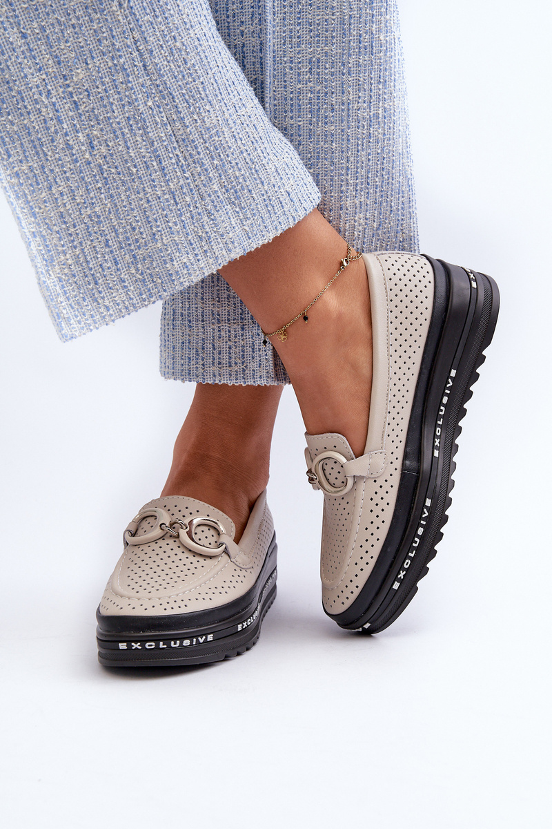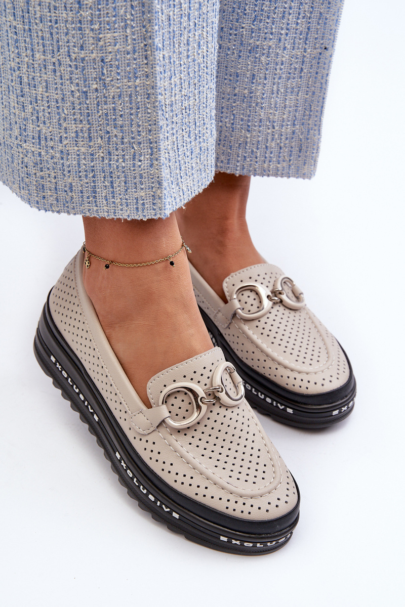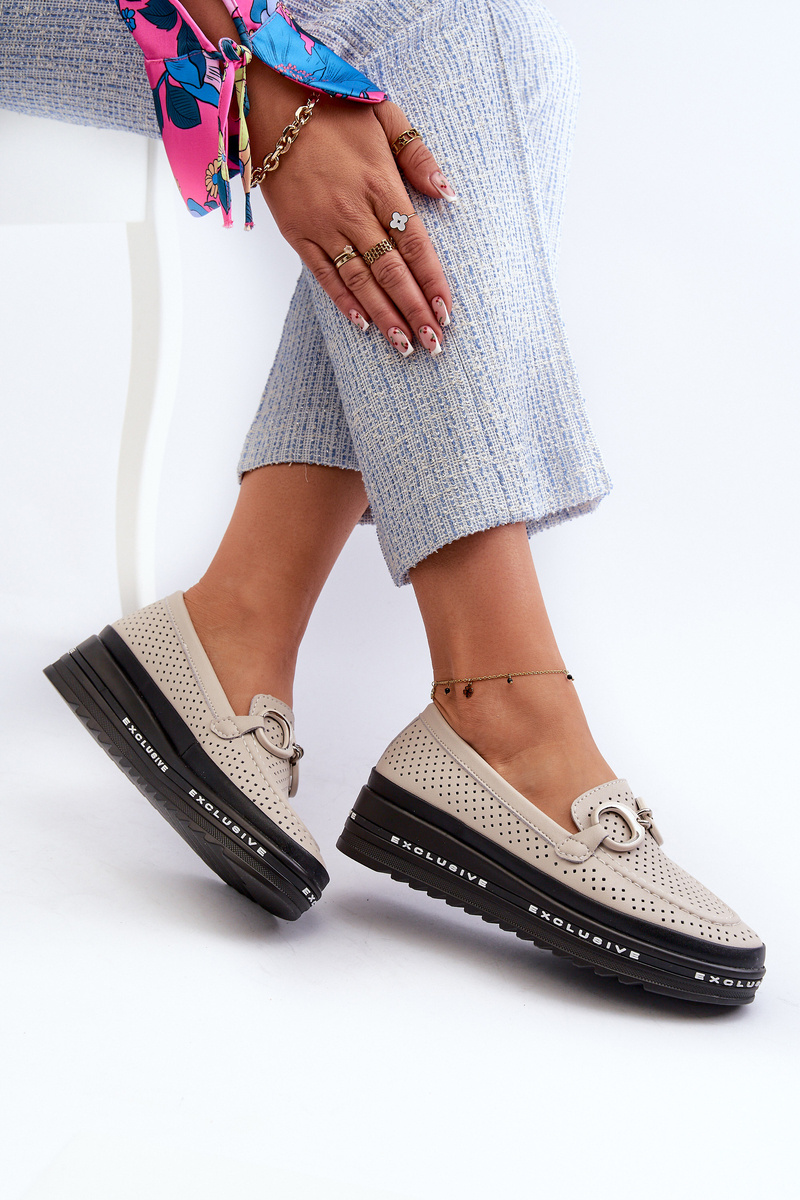 Dámske kožené mokasíny na platforme s ozdobou S.Barski LR750 béžové