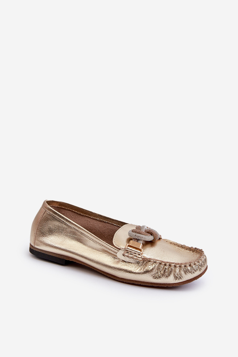 Dámske kožené mokasíny s ozdobou Laura Messi 2761 Zlaté