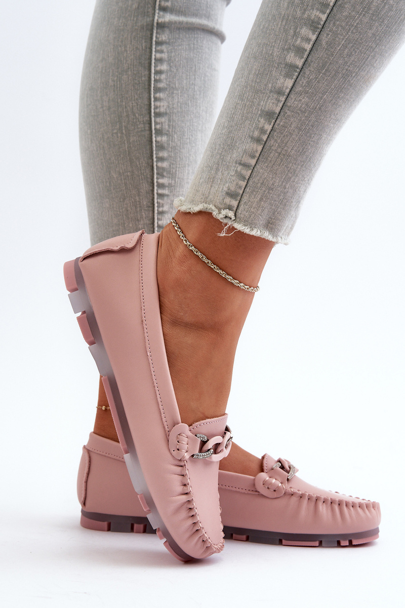 Dámske kožené mokasíny s ozdobou ružové S.Barski LR339