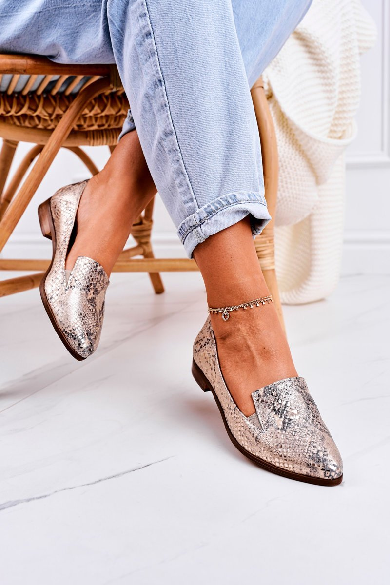 Dámske kožené mokasíry, vzor pre zvieratá, zlatý šarlett