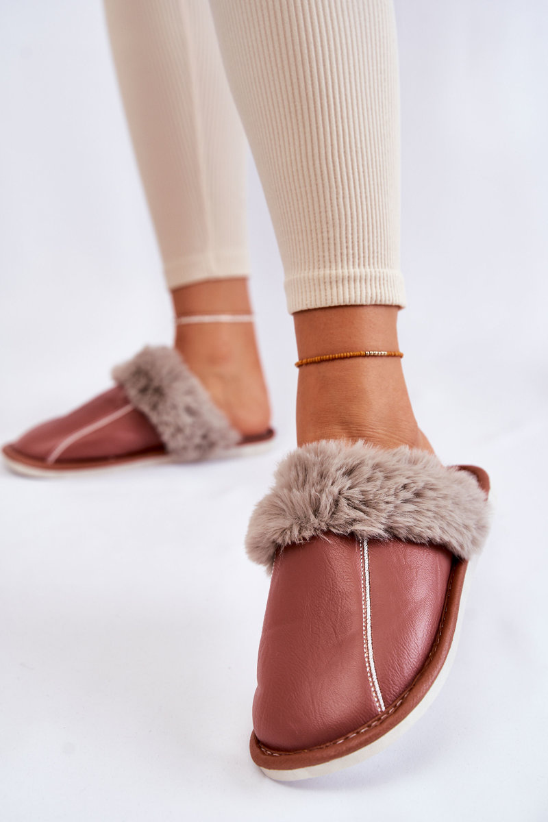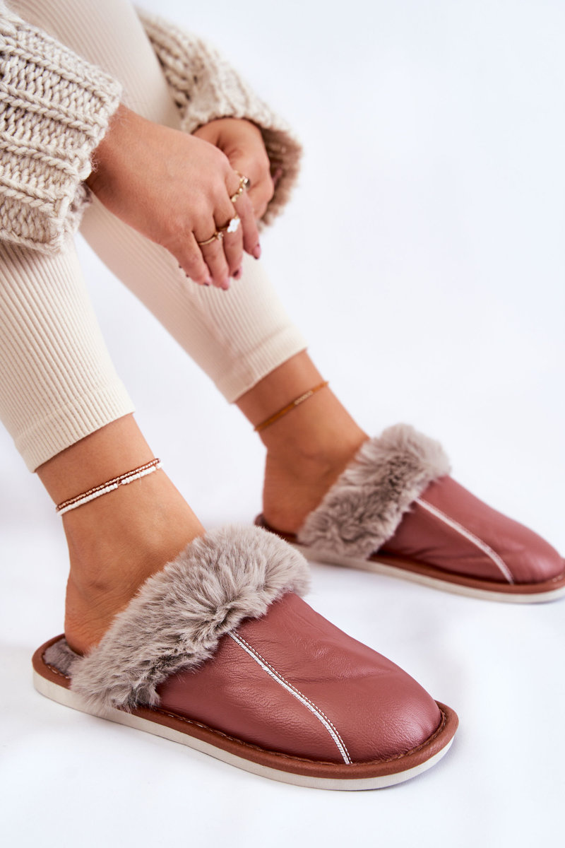 Dámske kožené papky s kožušinou tmavo ružovú Rossu
