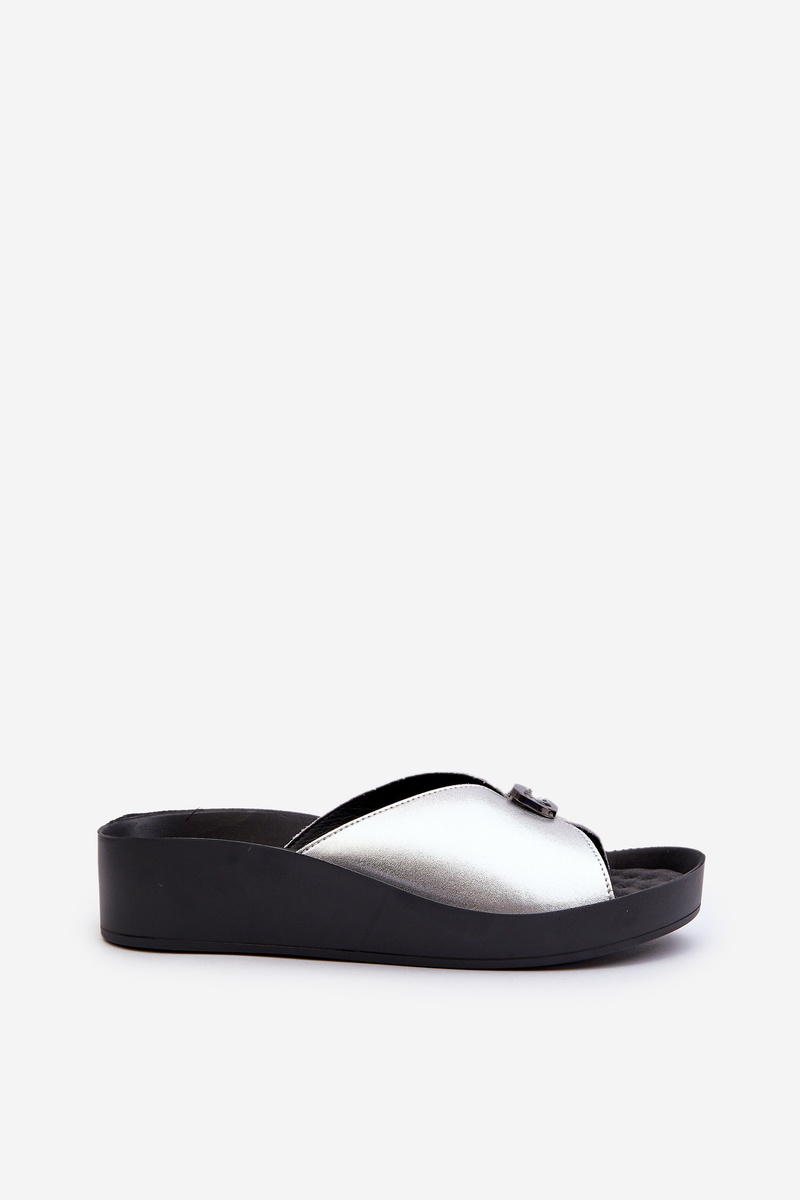 Dámske kožené papuče so striebornou ozdobou S.Barski KV27-027