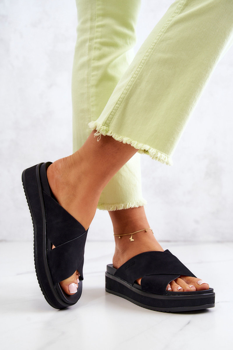 Dámske kožené papuče veľká hviezda JJ274721 čierna