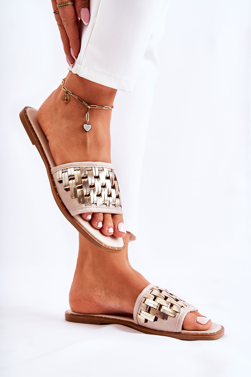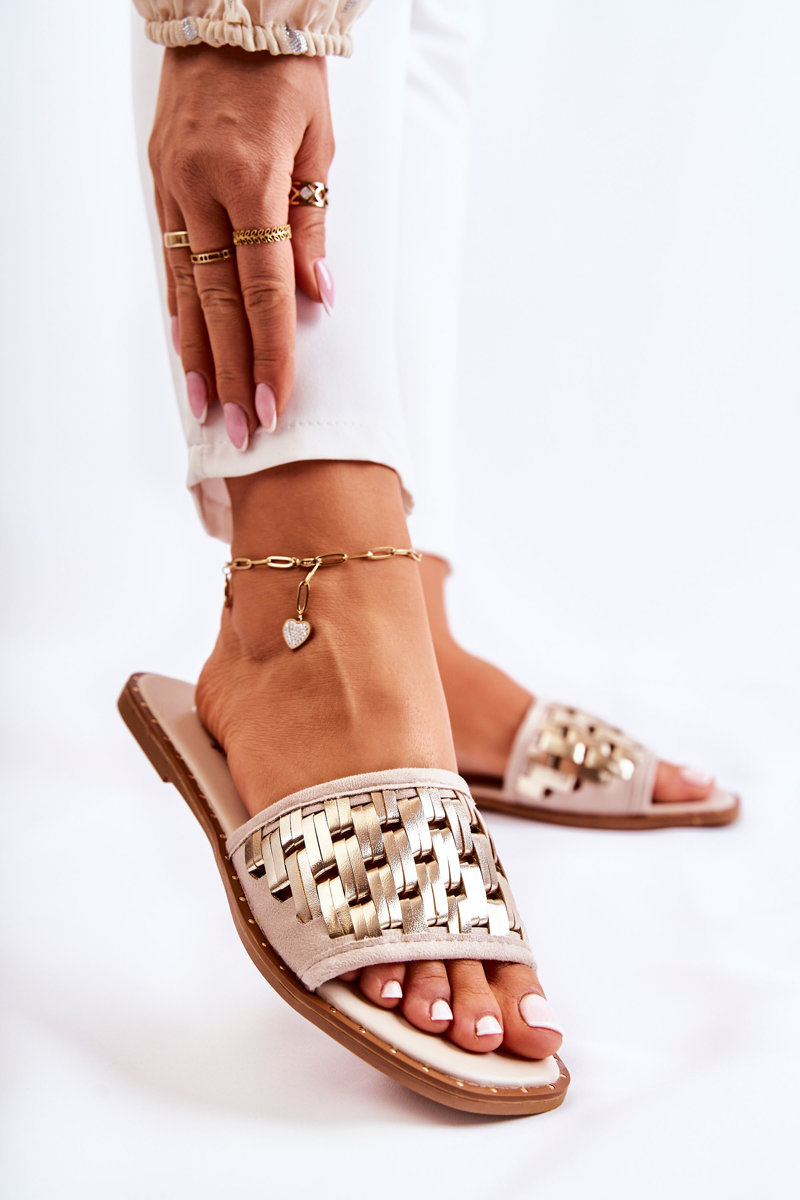 Elegantné ženské žabky s módnym, prepleteným frontom. Vyrobené z ekologickej kože a ekologického semišového pripojenia. Plippers majú okolo chodidiel cvočky, ktoré im dávajú charakter. Vložka mäkkých pohodlia vložka z ekologickej kože je veľmi pohodlná na použitie. Nos objavený, zaoblený. Ploché, pridelené, s podrážkou vyrobenou z plastu. Pevný model, ideálny pre letné dni! Pri výbere veľkosti navrhnite tabuľku veľkosti. /p>