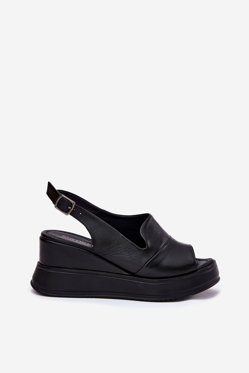 Skóra naturalna - labeltak Towar wprowadzony przed 13.12.2024Tak Dámske Kožené Sandále Na Klíne Artiker 52C0484 Čierne